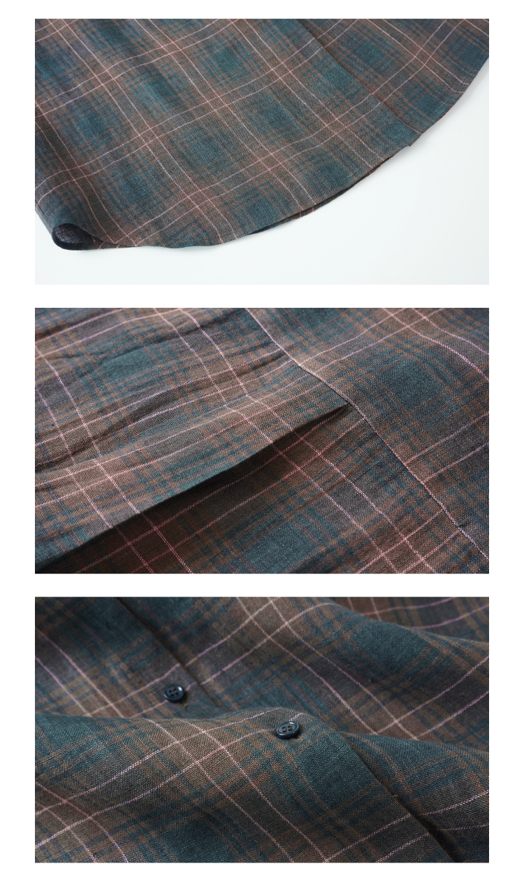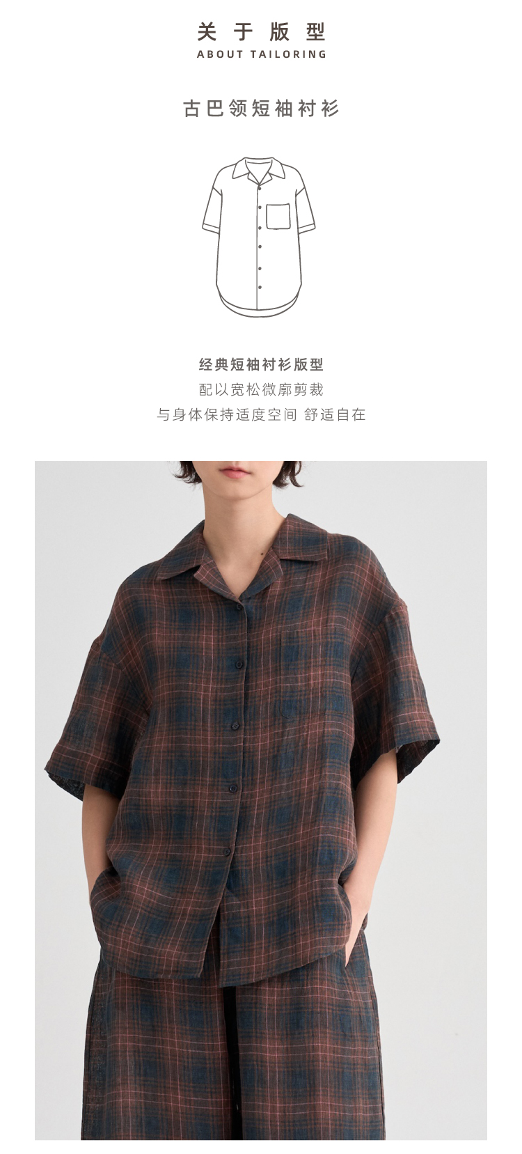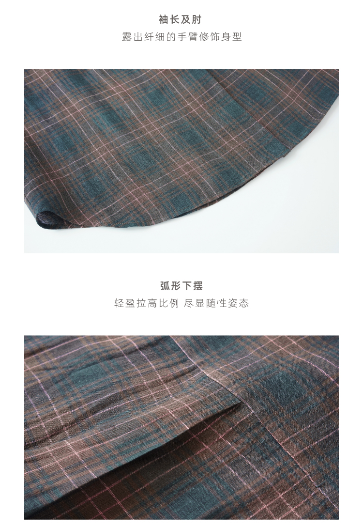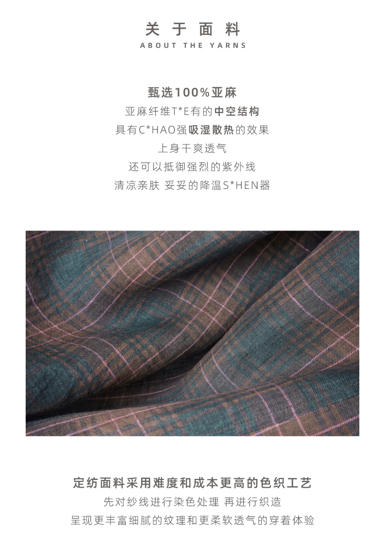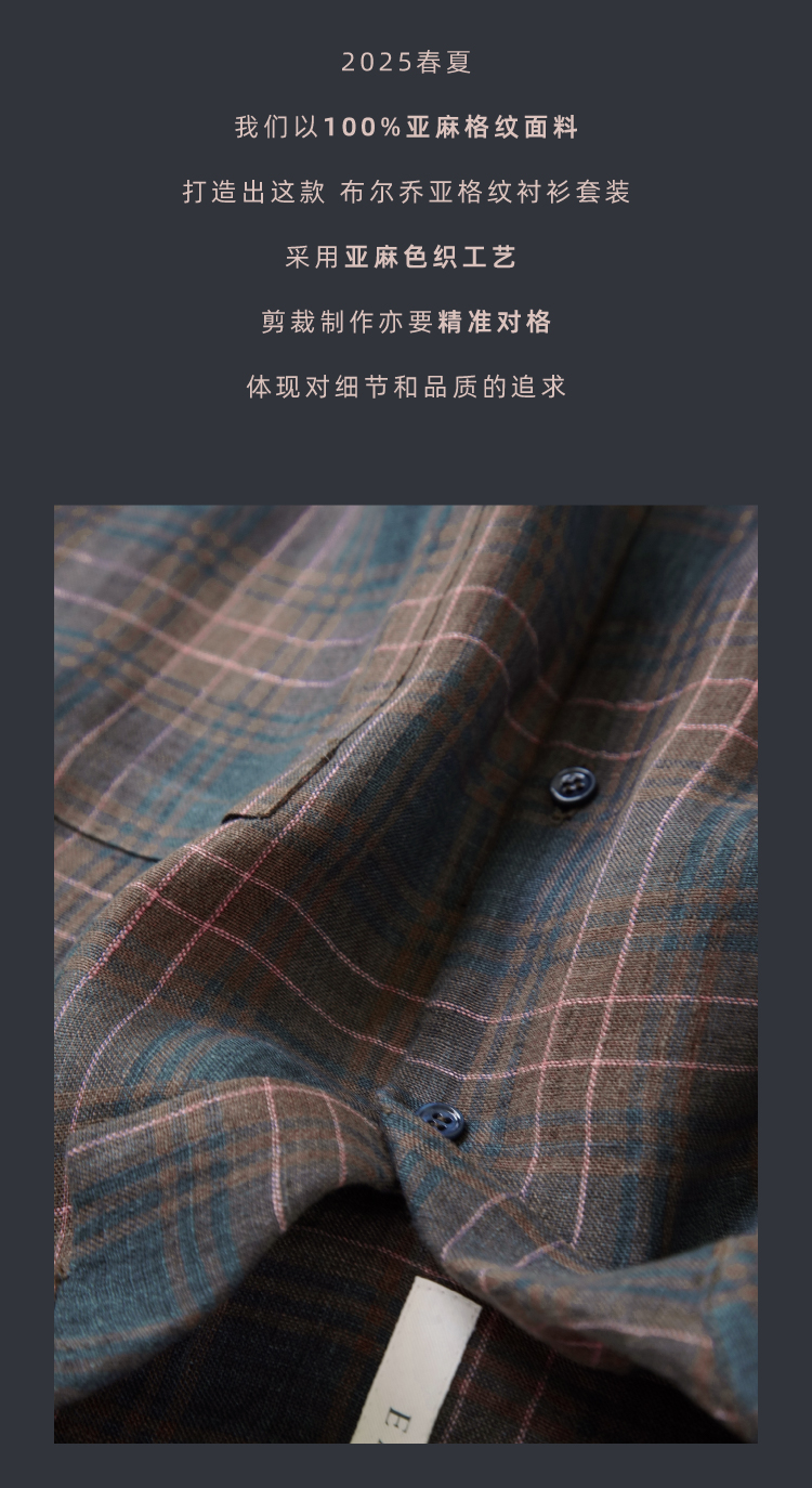 布尔乔亚亚麻格纹衬衫气球裤套装