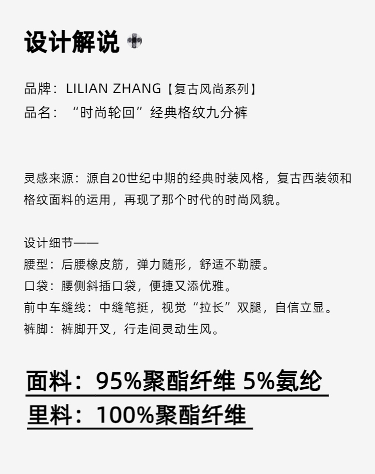 E-定制 ——“时尚轮回”——复古风尚——经典格纹女士九分裤 2504010