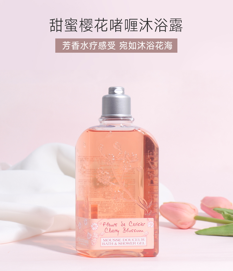 欧舒丹白樱花沐浴露身体乳套装 甜蜜浪漫香体保湿沐浴啫喱250ml / 樱花润肤乳滋润保湿250ml