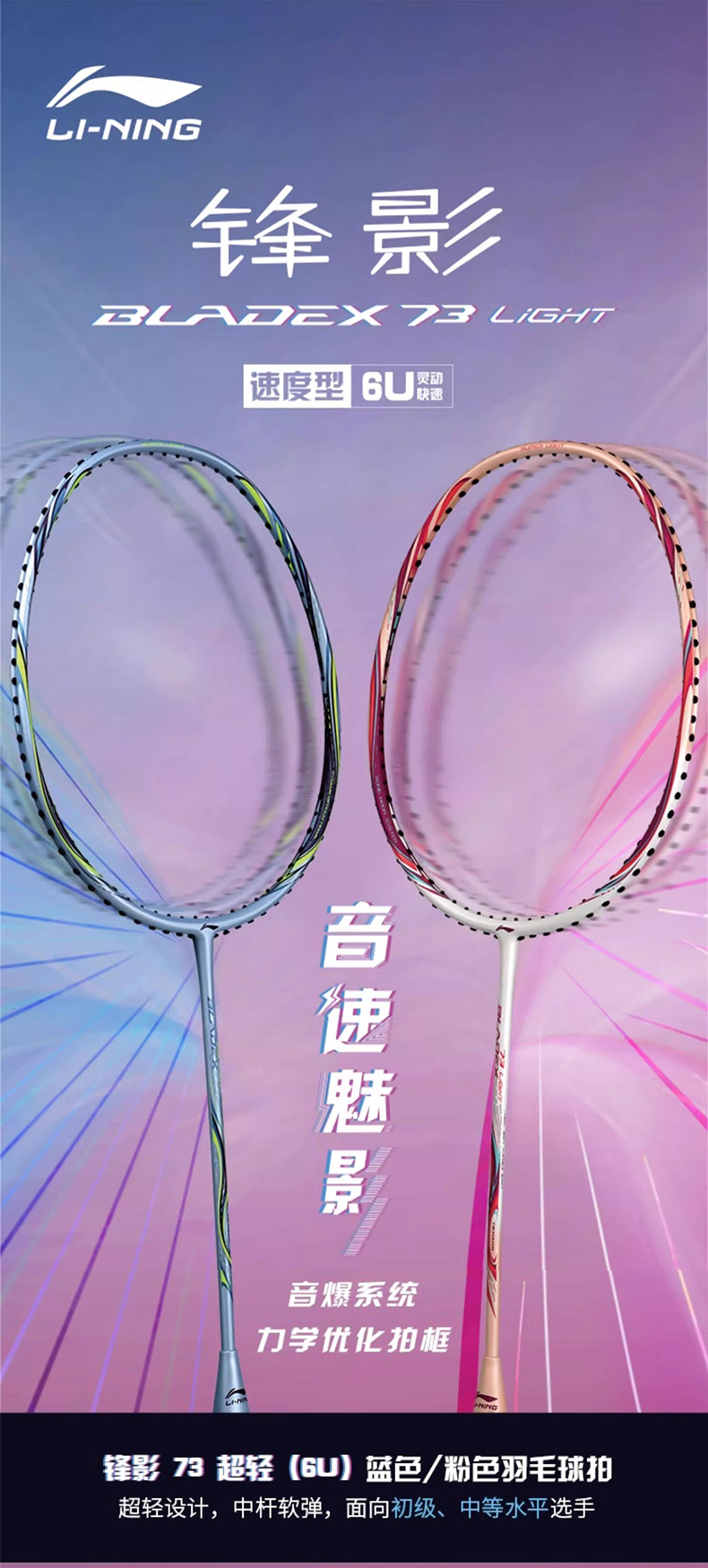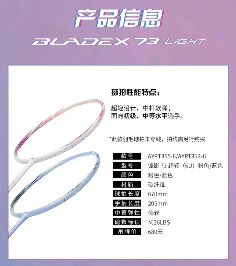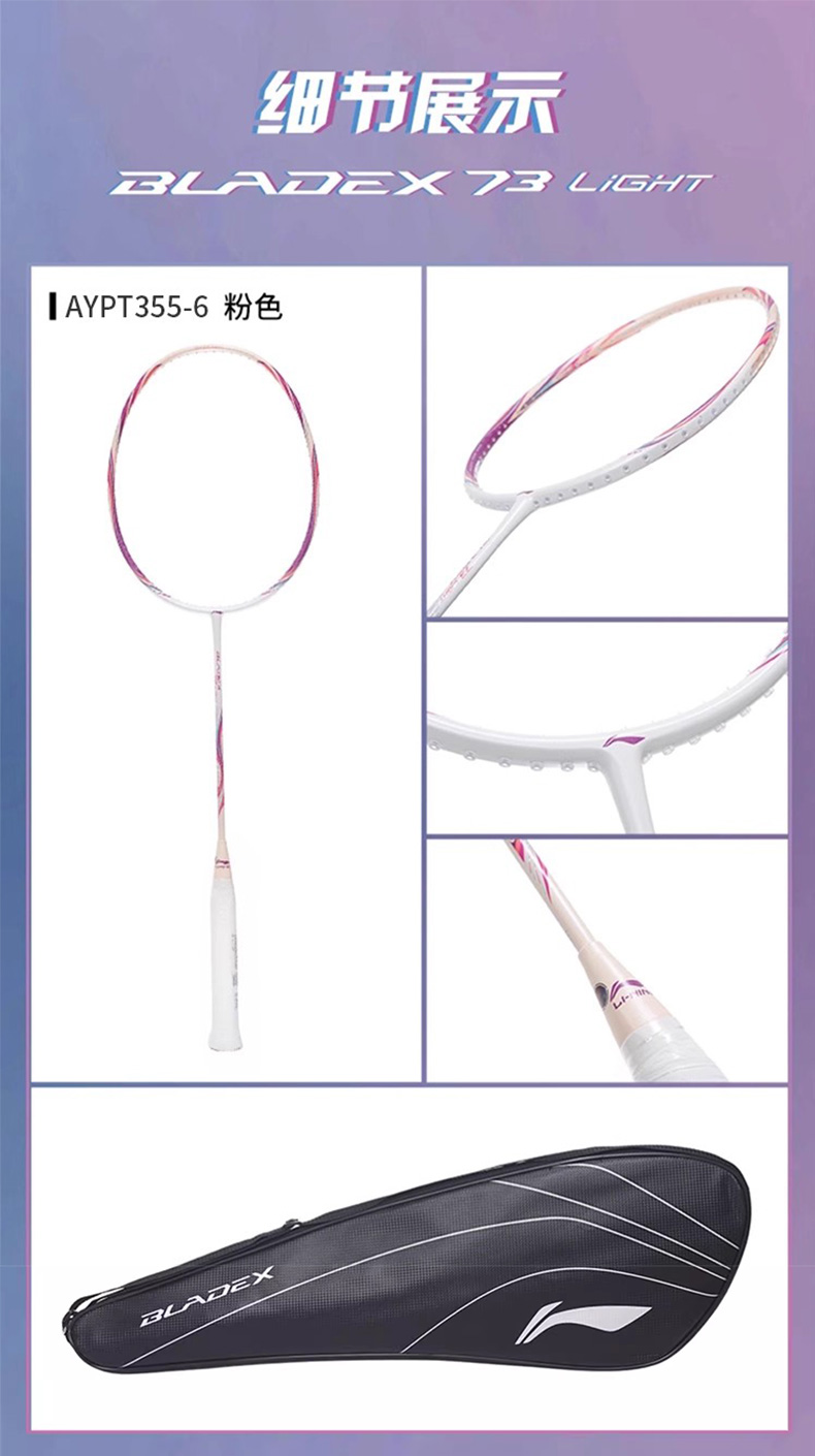李宁羽毛球拍锋影73 超轻6U全碳素速度型单拍锋影系列女士轻量入门初级