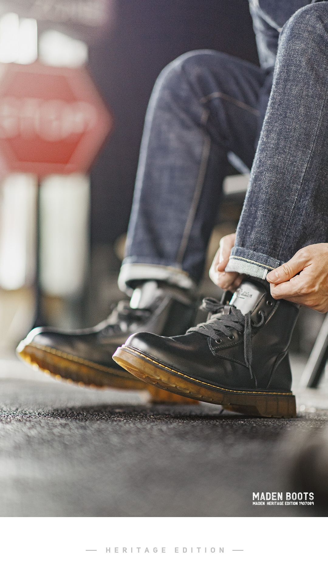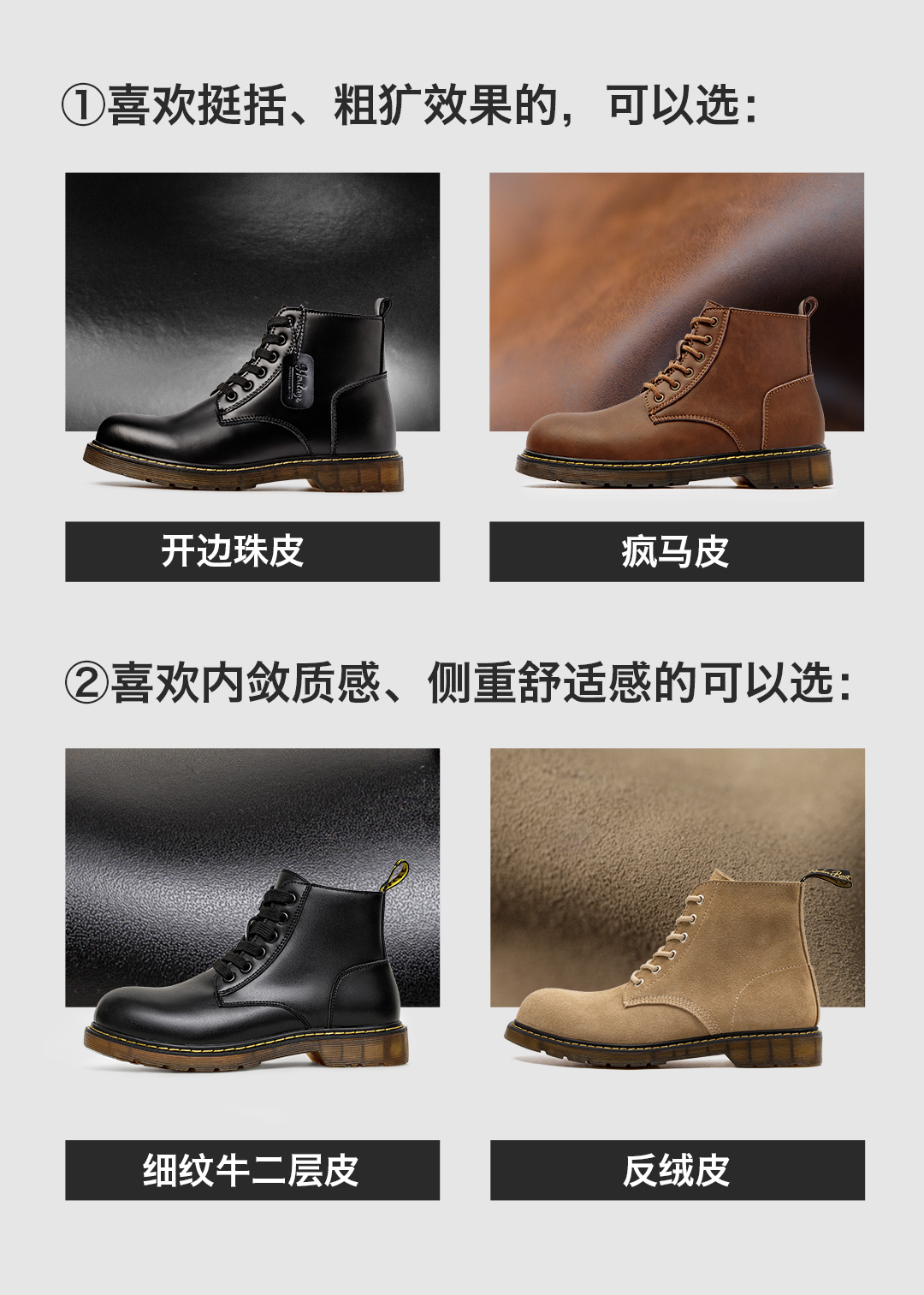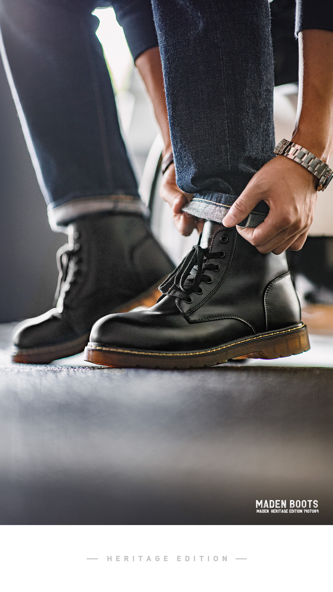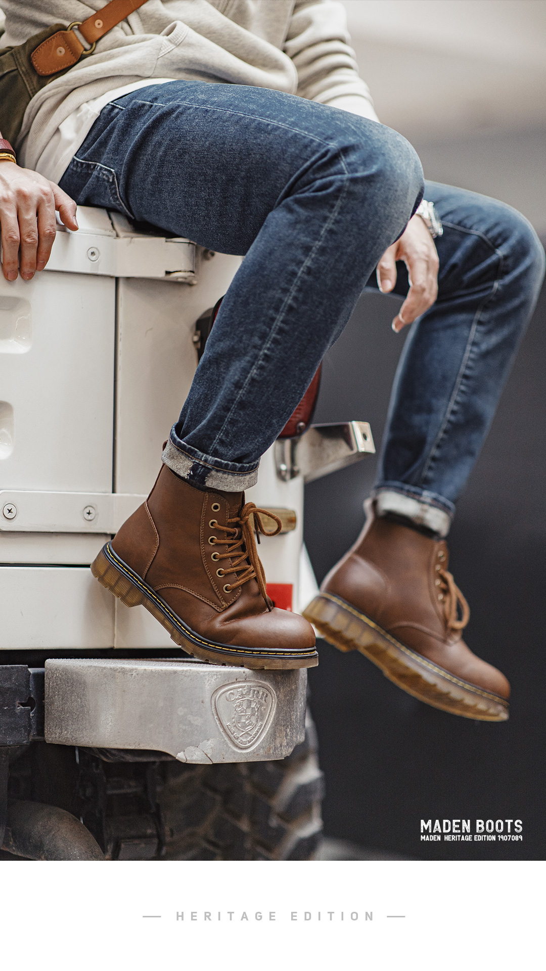 【马登男鞋】马丁靴秋冬新款男鞋高帮真皮英伦风工装鞋中帮休闲皮鞋黑色短靴子