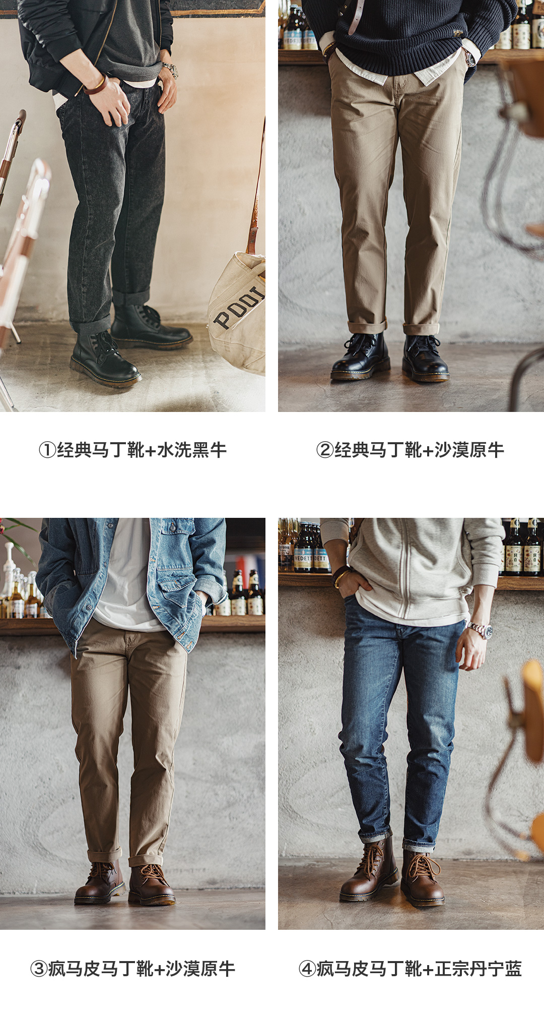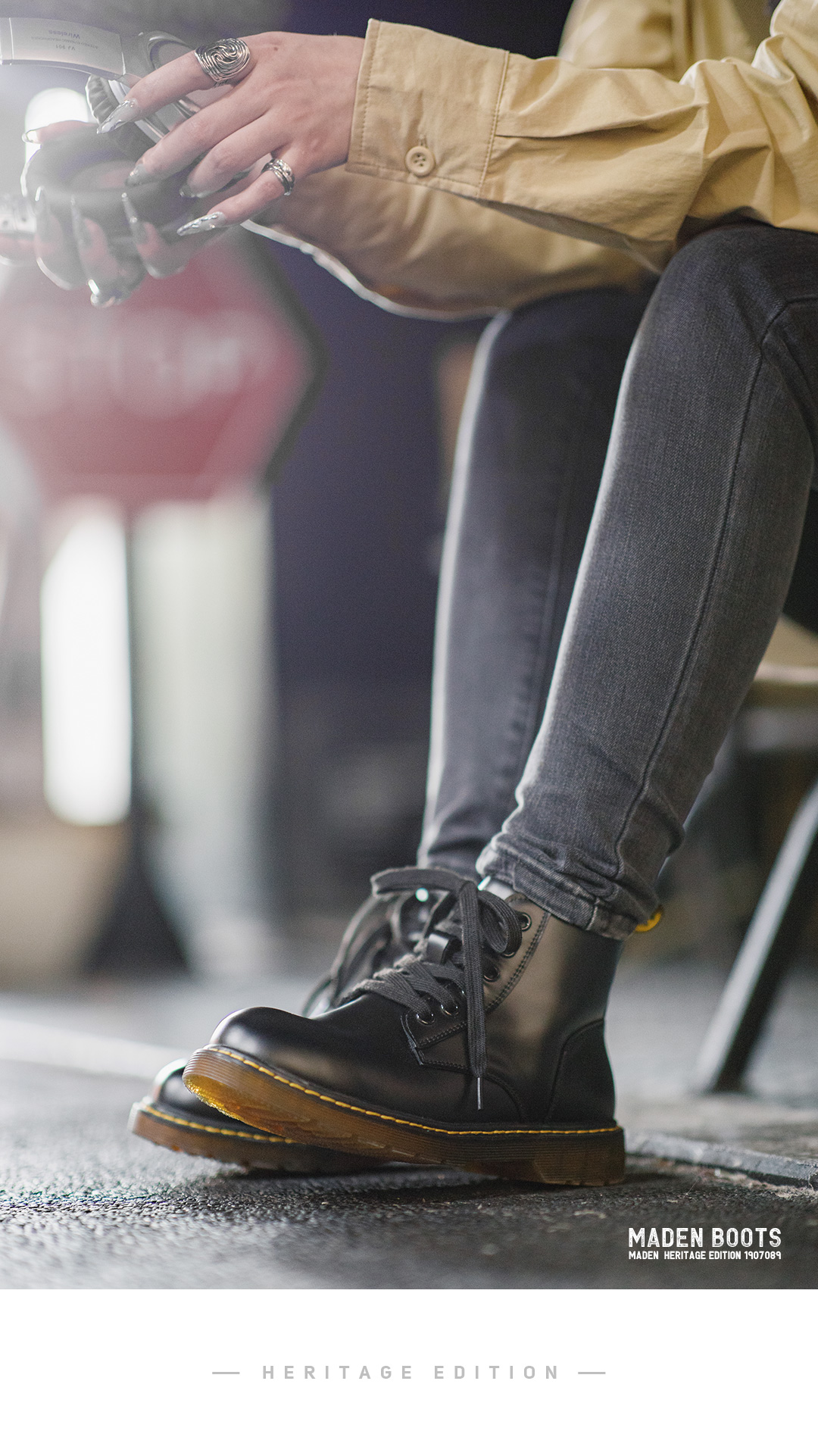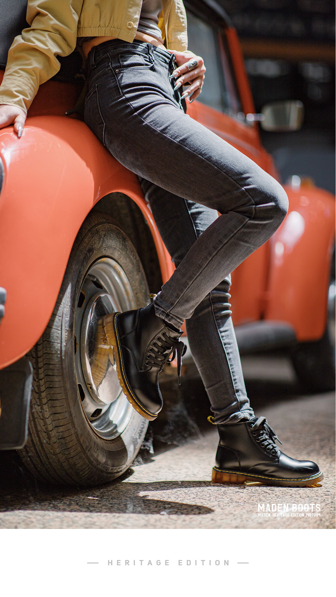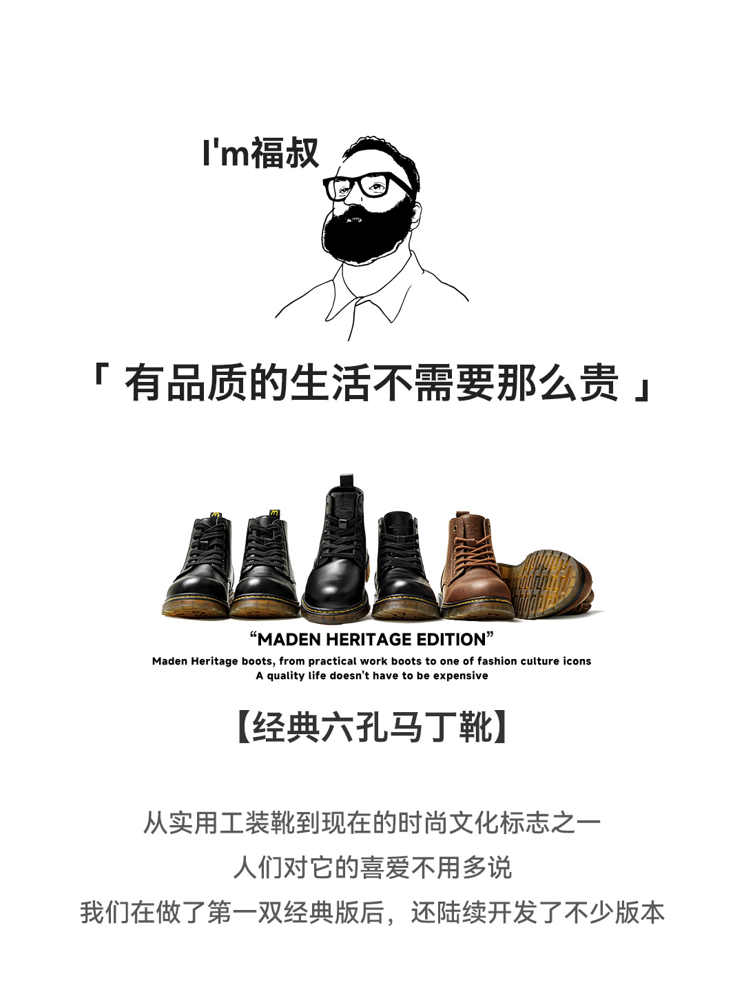 【马登男鞋】马丁靴秋冬新款男鞋高帮真皮英伦风工装鞋中帮休闲皮鞋黑色短靴子