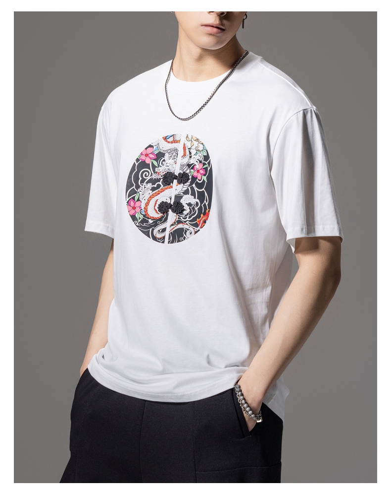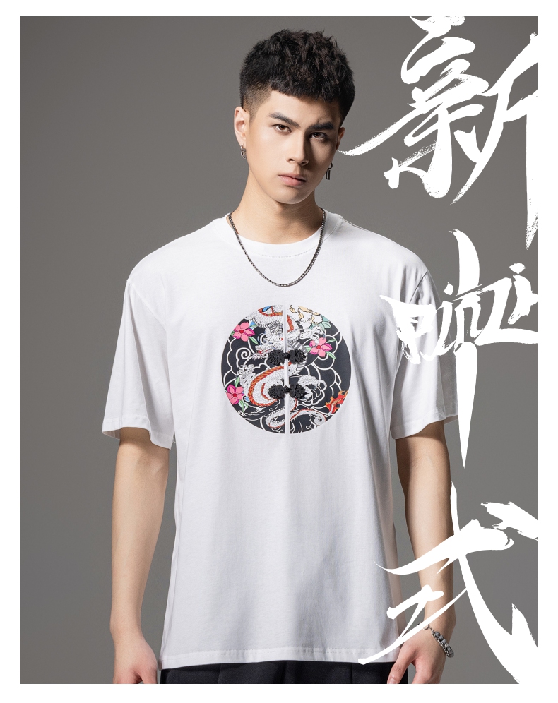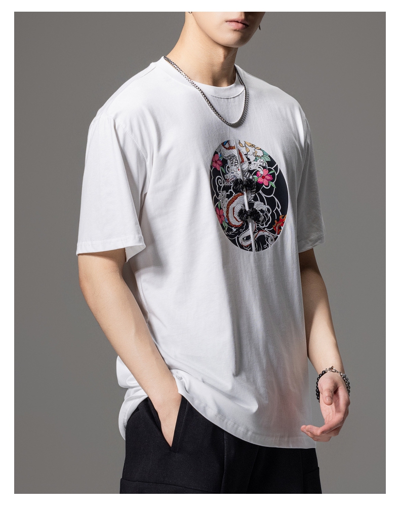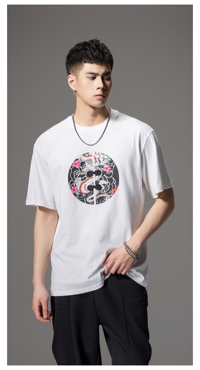 PINLI品立新中式2024夏季新款白龙印花短袖T恤中国风盘扣潮男体恤BG242111035