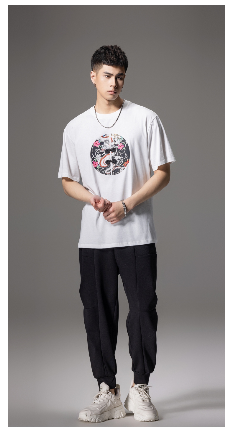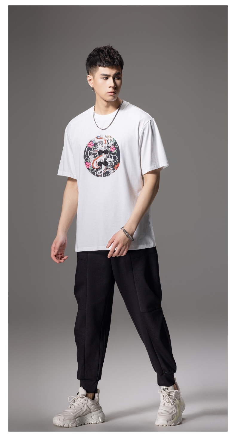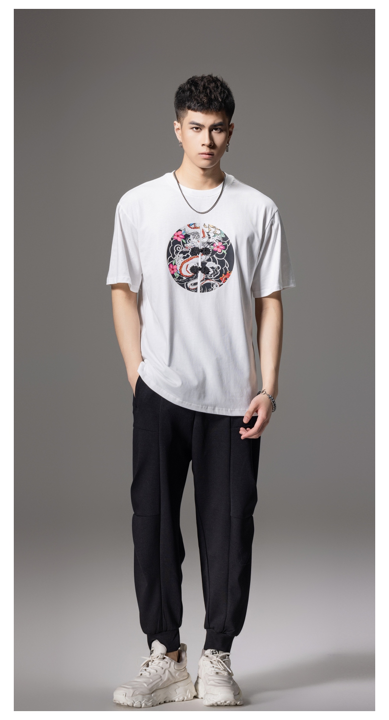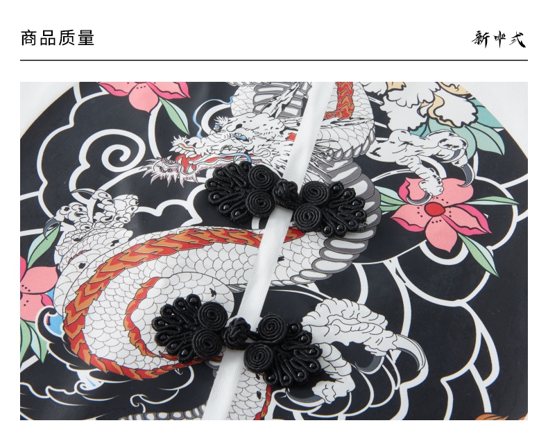PINLI品立新中式2024夏季新款白龙印花短袖T恤中国风盘扣潮男体恤BG242111035