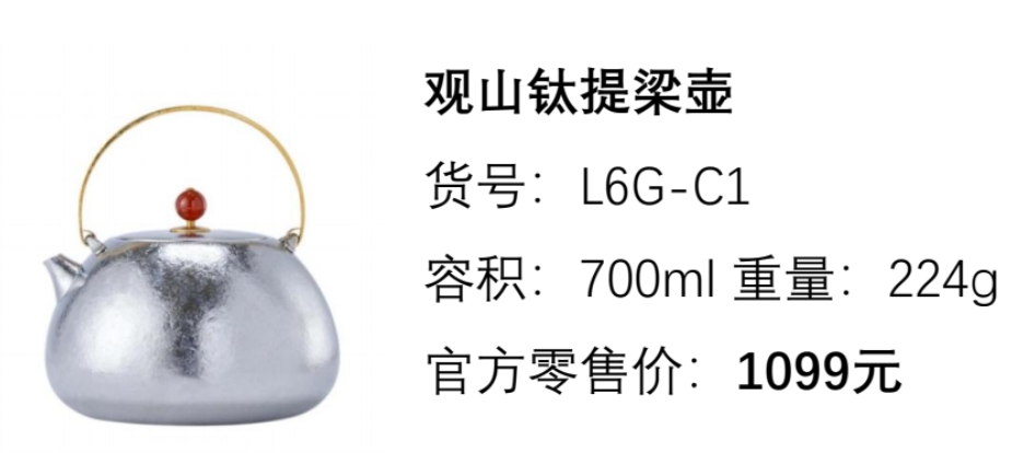 观山钛提梁壶(经典款L6G-C1):5积分价+789元,原价989元;