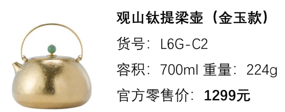 观山钛提梁壶(金玉款L6G-C2):5积分价+929元,原价1169元。