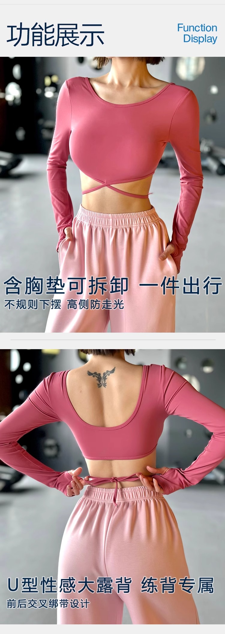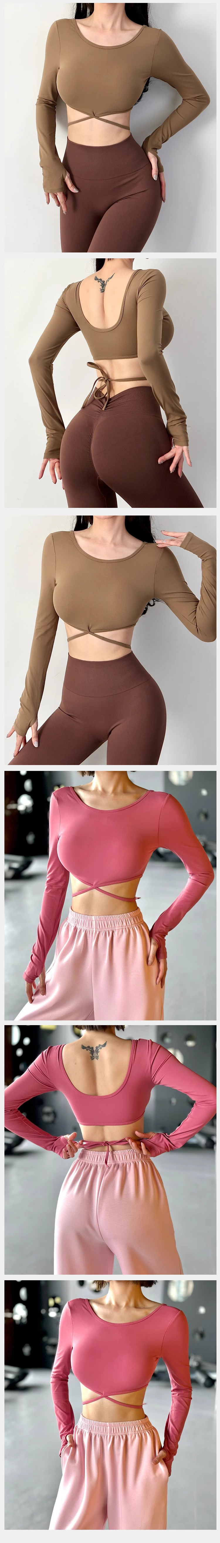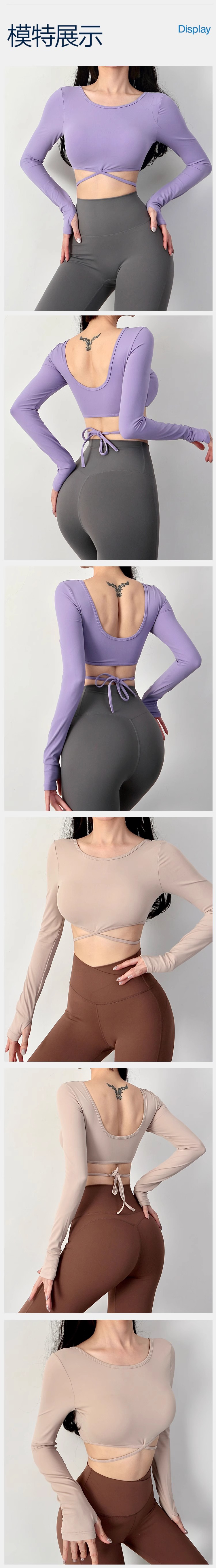 跃牌【化蝶双飞】系列 裸感大露背短款运动健身上衣长袖 TM0145(带胸垫)