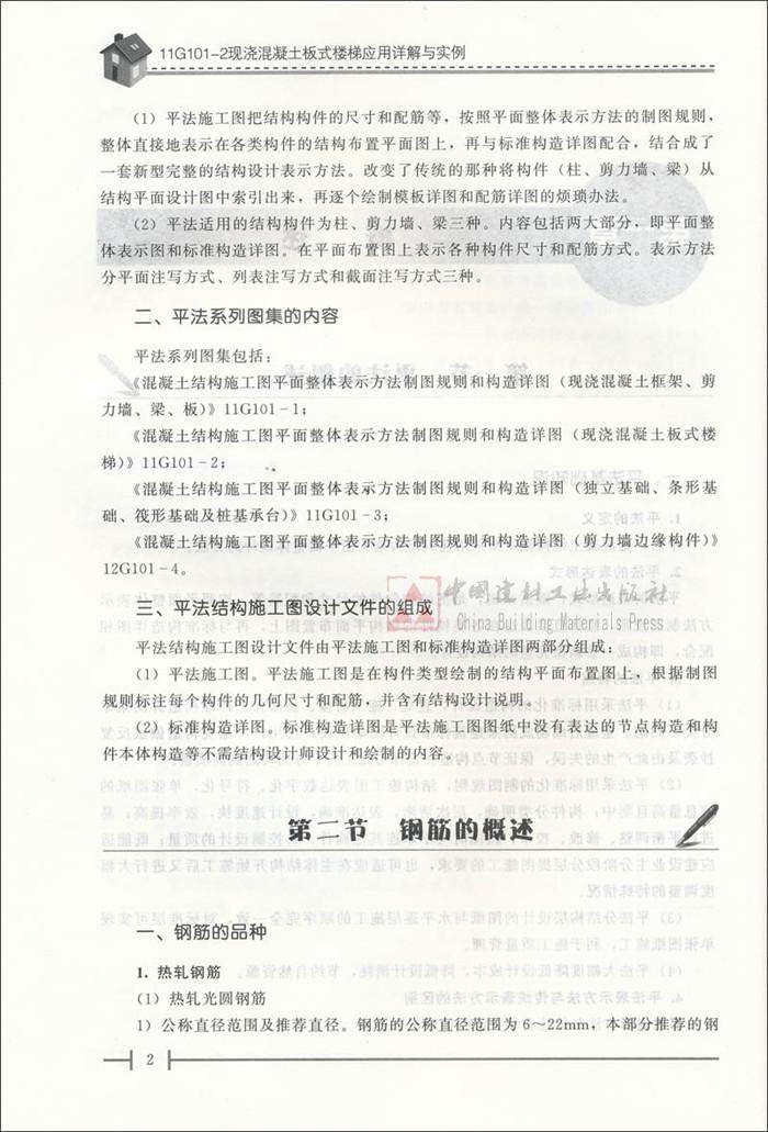11G101系列图集于2011年9月1日正式实施。为便于学习11G101系列图集,中国建材工业出版社组织人员编写了本套丛书。本丛书依据11G101系列图集进行编写,并在书中穿插讲解了有关实例。《11G101-2 现浇混凝土板式楼梯应用详解与实例》一书由杨先放任主编,张建新任副主编;四川建筑职业技术学院李辉教授任主审。