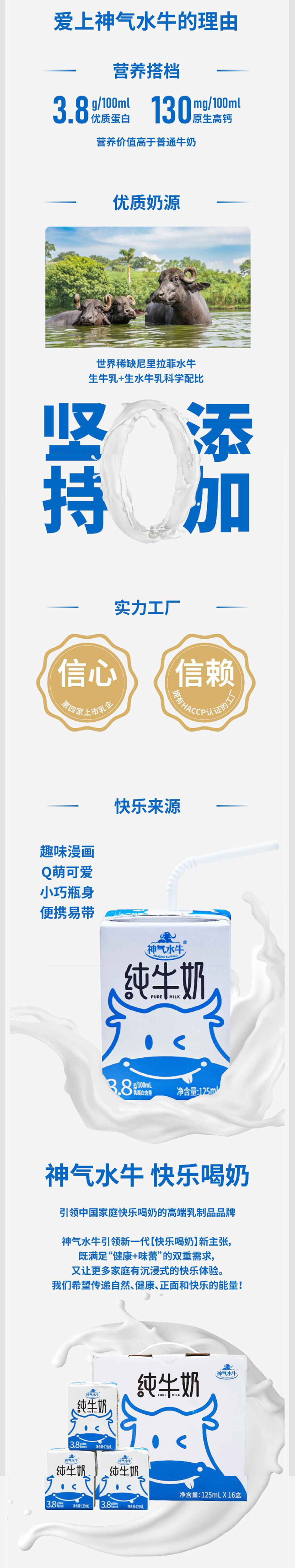 [屁侠推荐]神气水牛纯牛奶125ml/盒 高钙水牛奶 新增200ml旋盖装 超值囤货套装