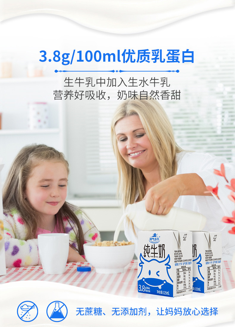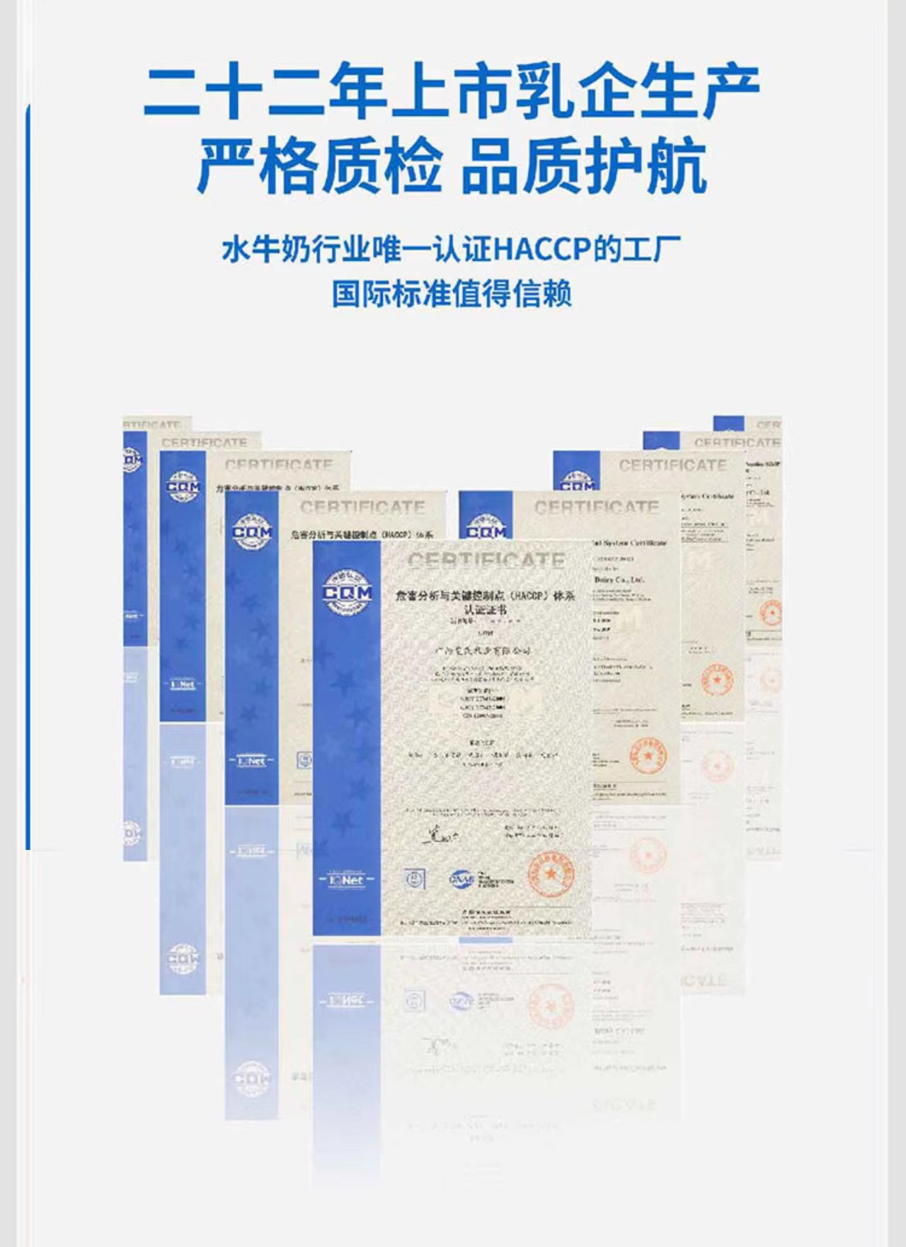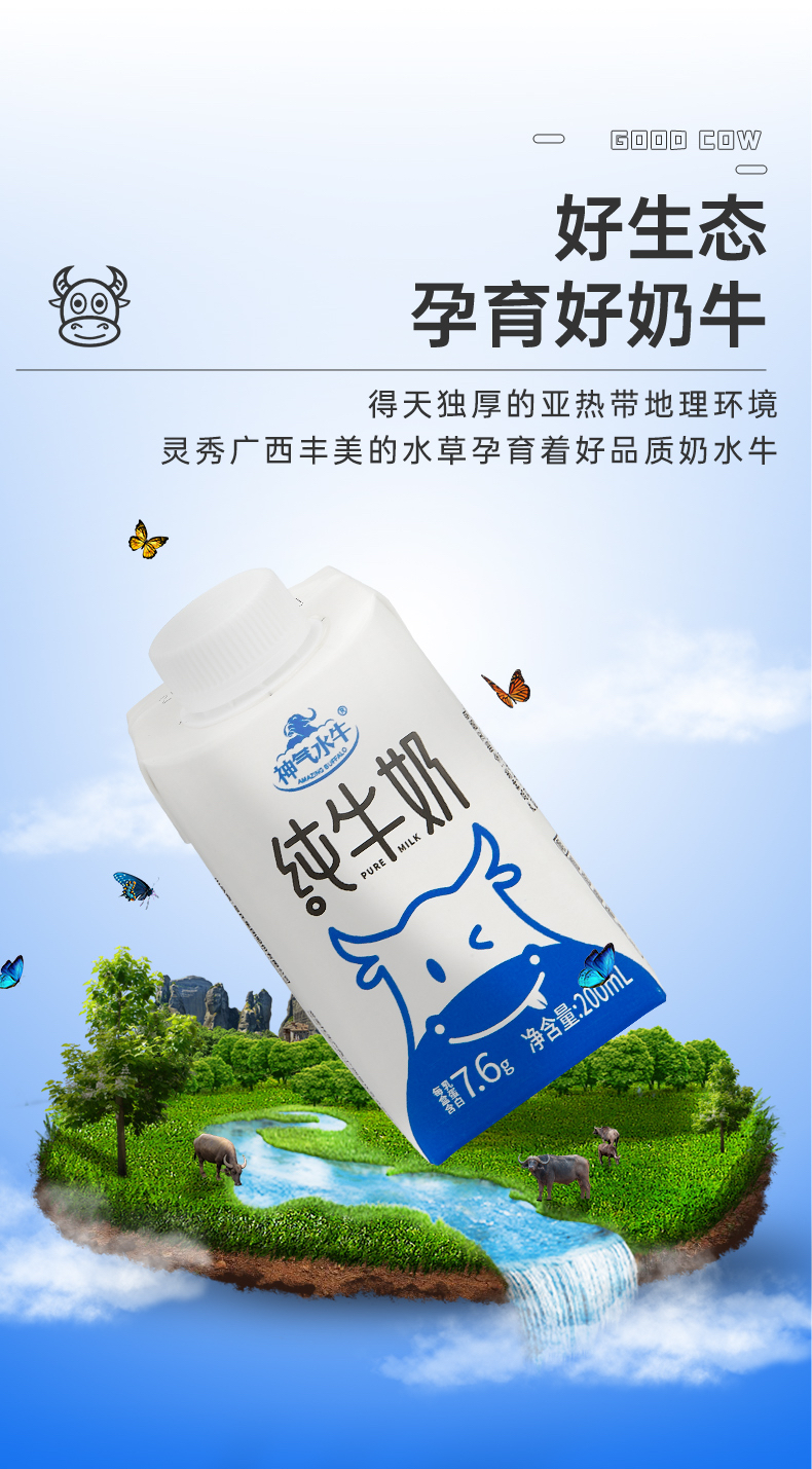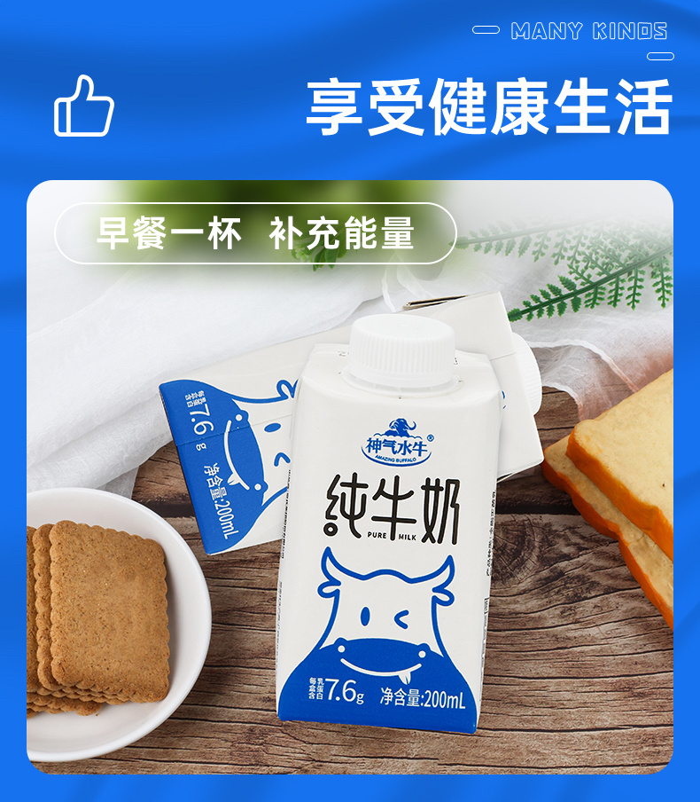 神气水牛纯牛奶,来自皇氏乳业,二十二年的上市乳业,大品牌更有保障。皇氏乳业自有牧场地处灵秀广西,亚热带地理环境得天独厚,水草丰美,并拥有水牛奶行业认证 HACCP 标准全自动化智能工厂,从挤奶到运输到加工,全程封闭管道、实时监控、冷链运输,产品更放心。好生态,孕育高品质水牛;好水牛,生产高品质牛奶;好牛奶,助力孩子每一天的健康成长。