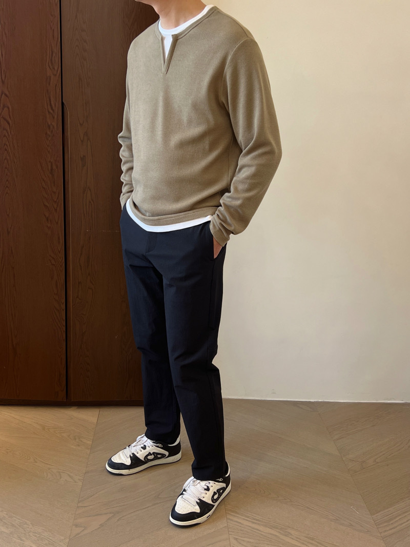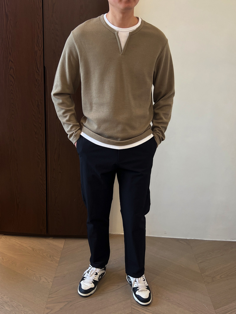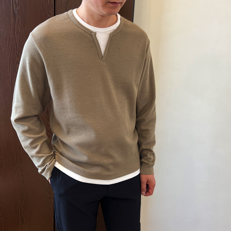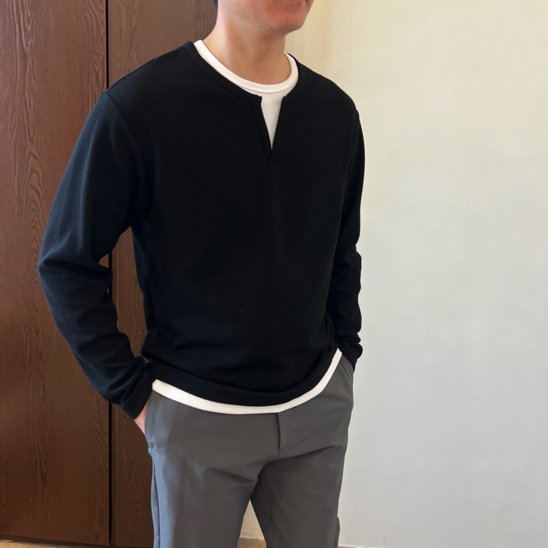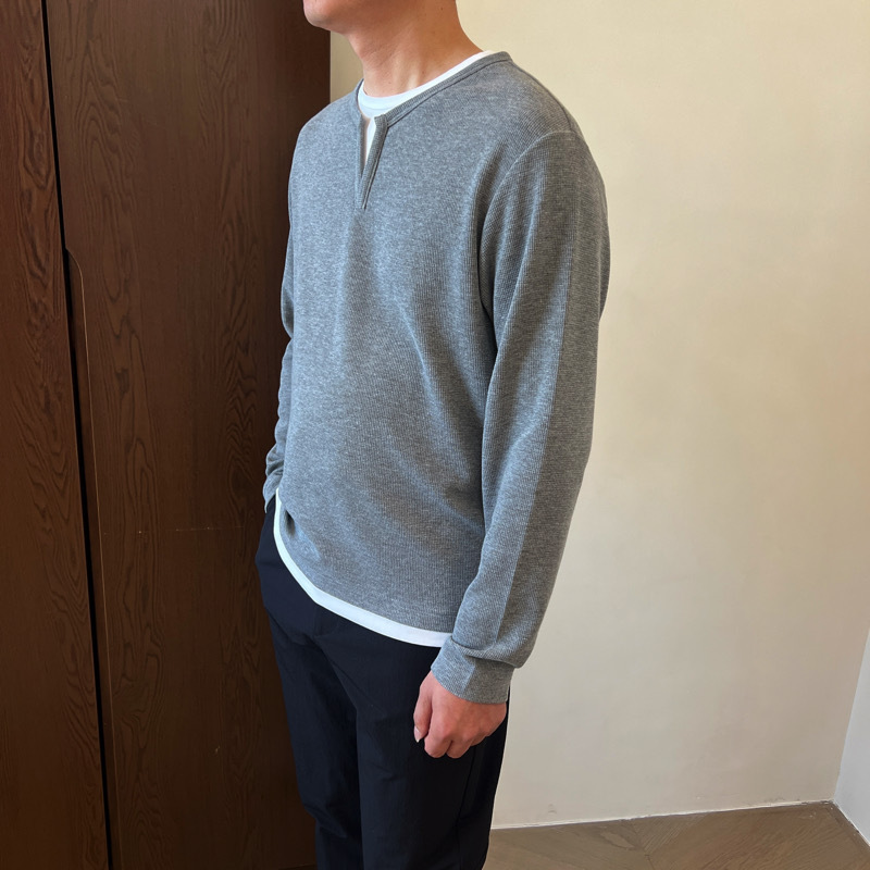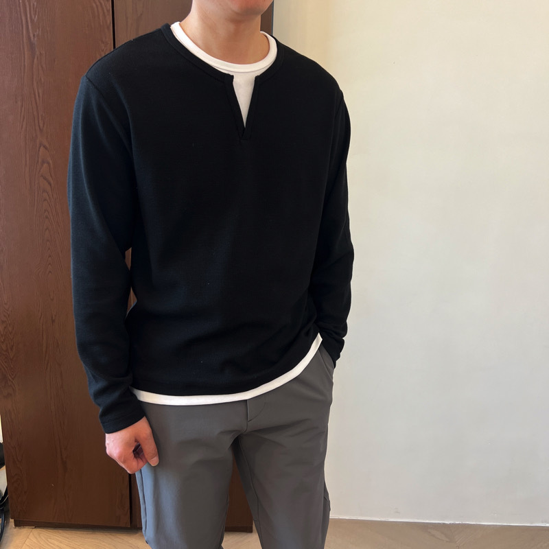 定织定纺棉,花纱华夫格假两件针织长袖衫