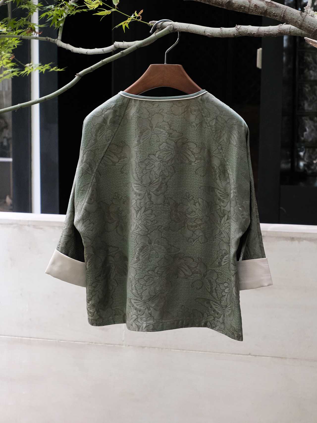 盛唐婧 |真丝提花罗芍药花开外套上衣-绿色