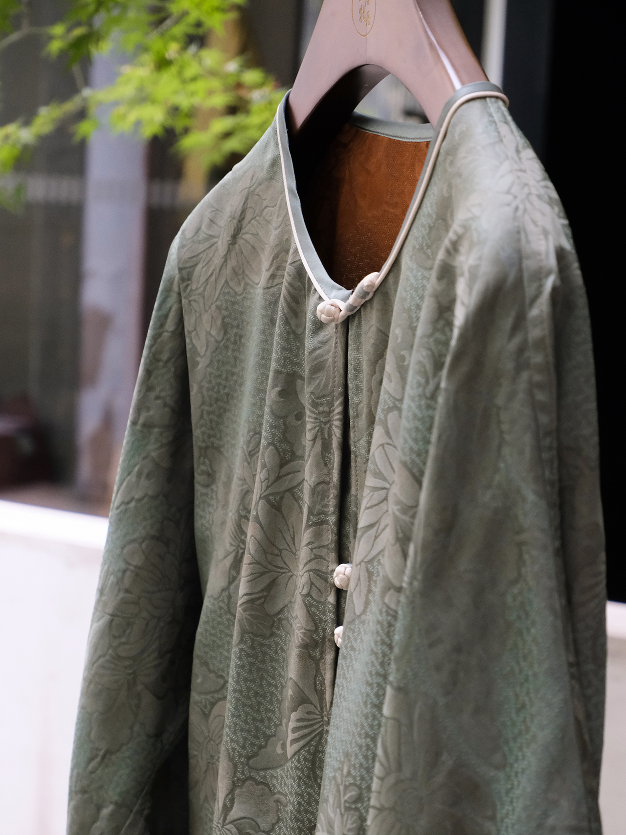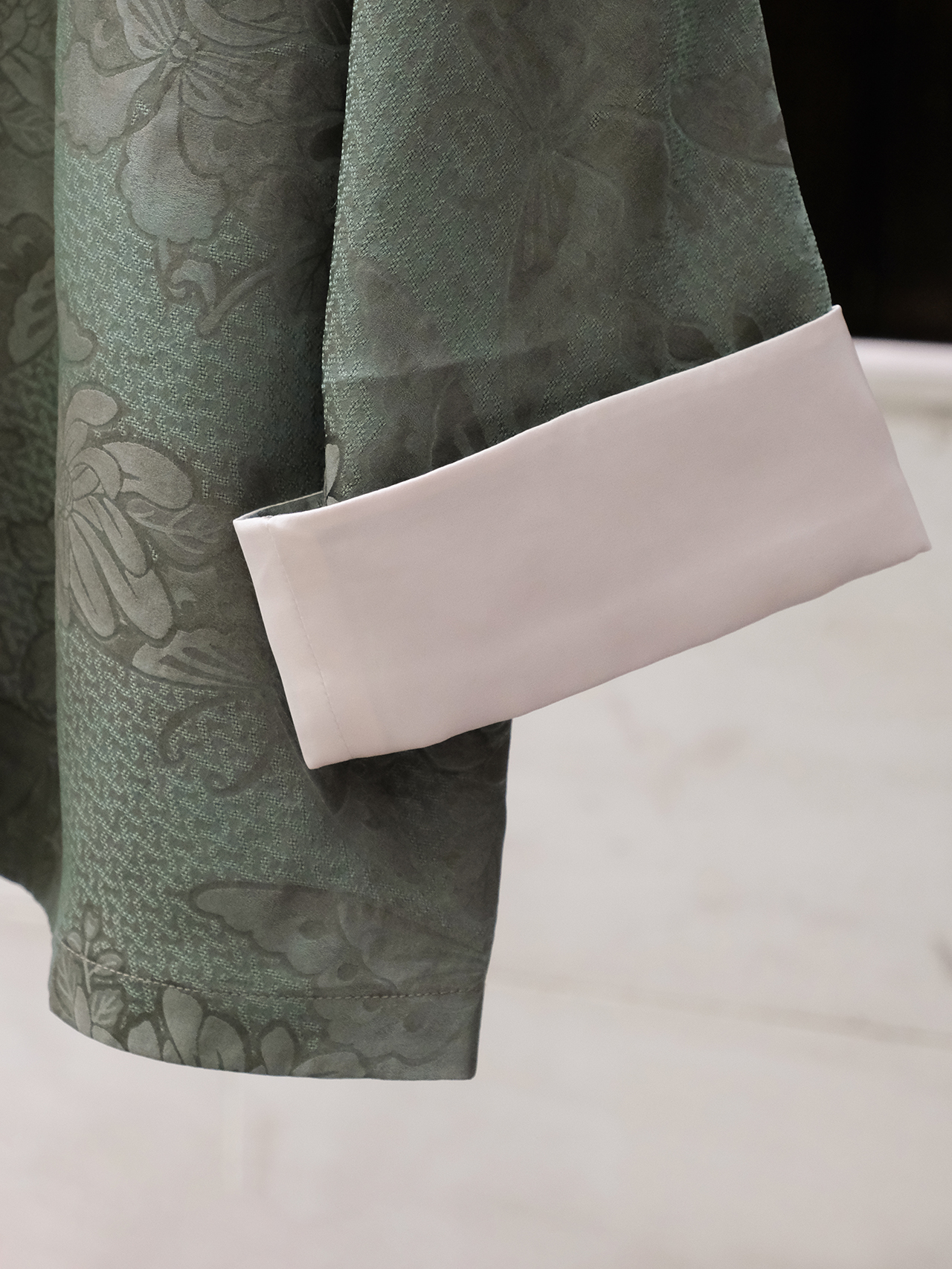 盛唐牡丹 |孔雀蓝双面穿菊花纹提花真丝外套