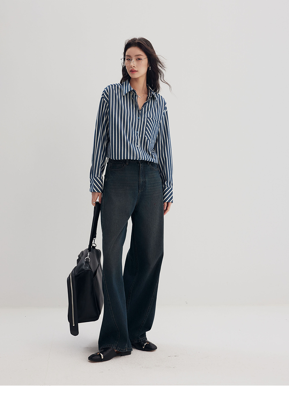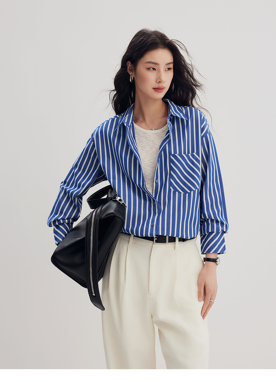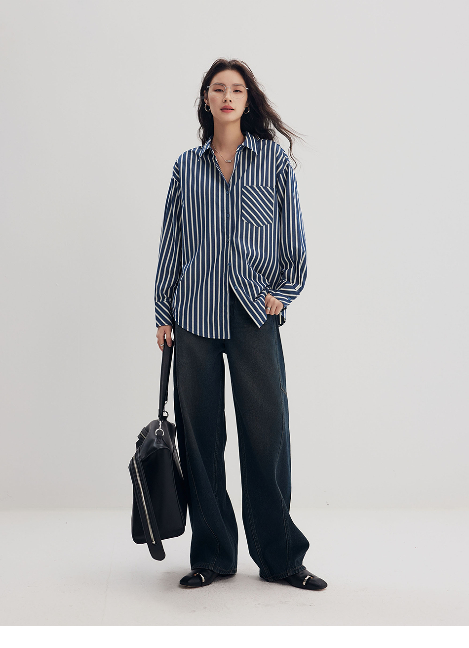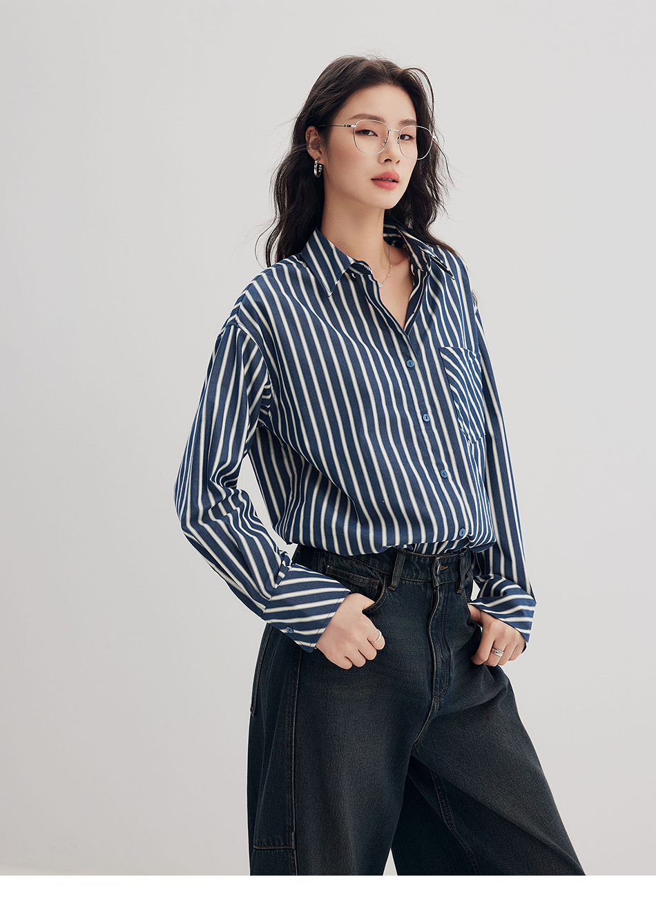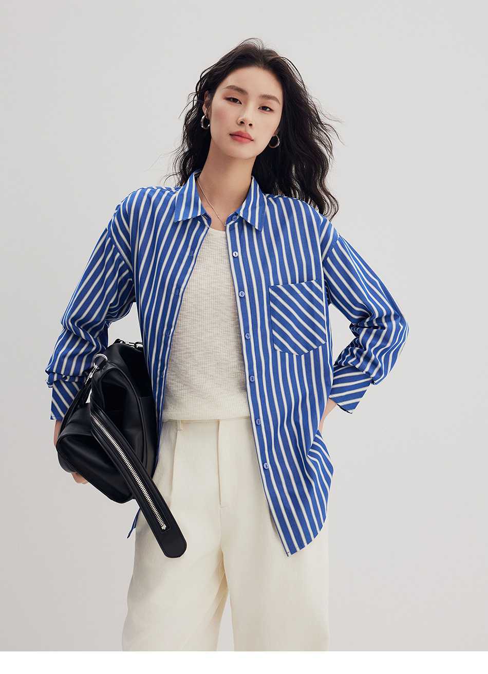 棉仓356604006-微微磨毛条纹衬衫
