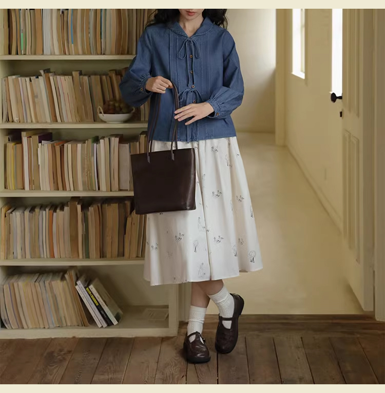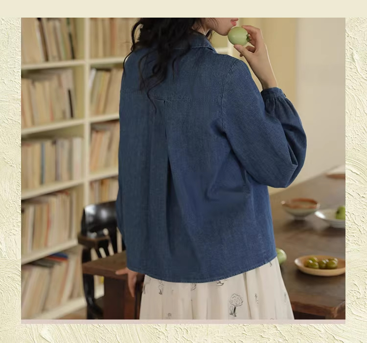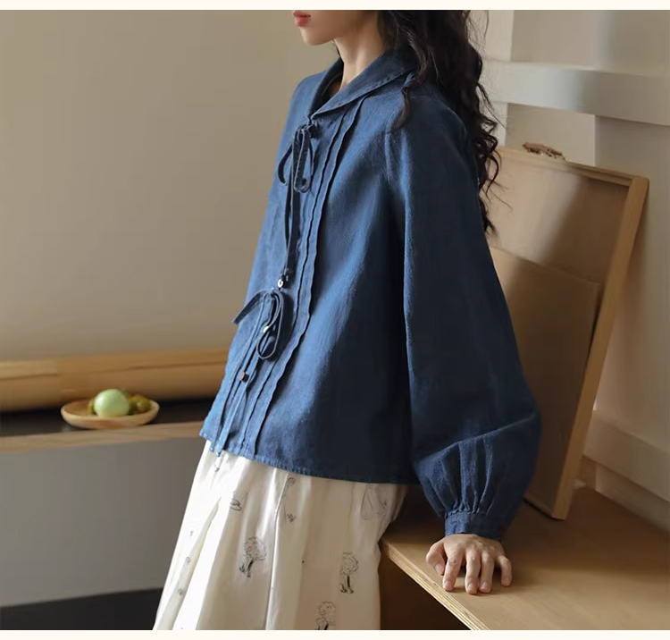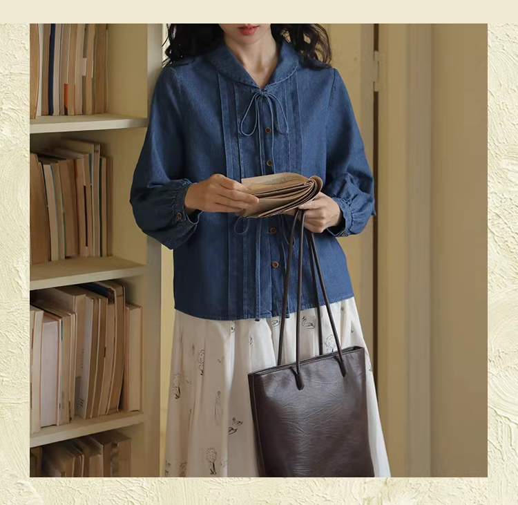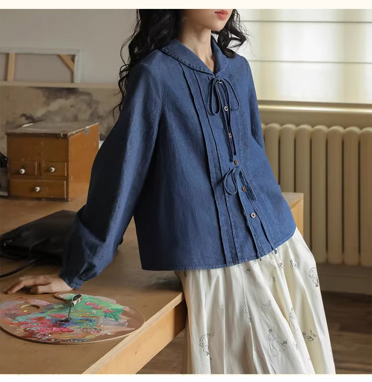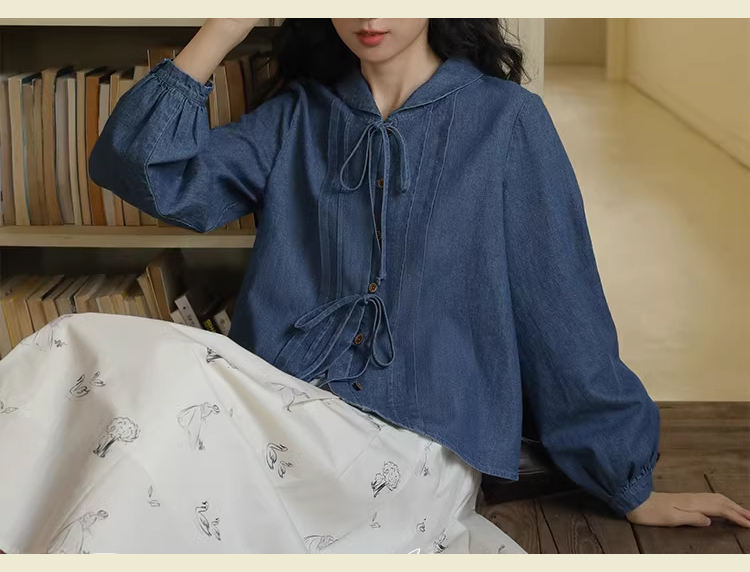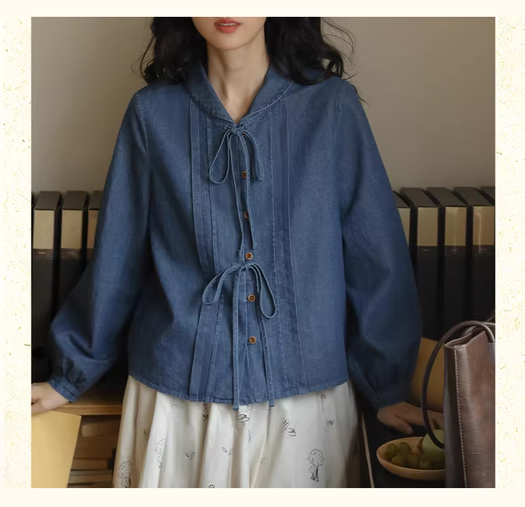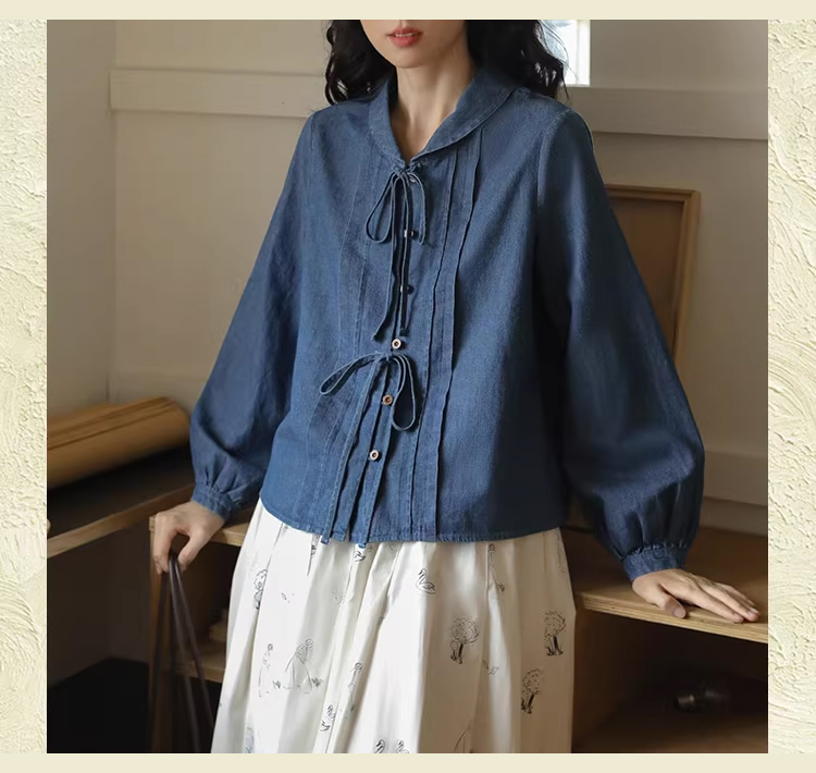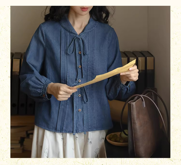裁缝学苑AQ409水洗牛仔系带衬衫纸样女装法式复古长袖上衣衬衣样板