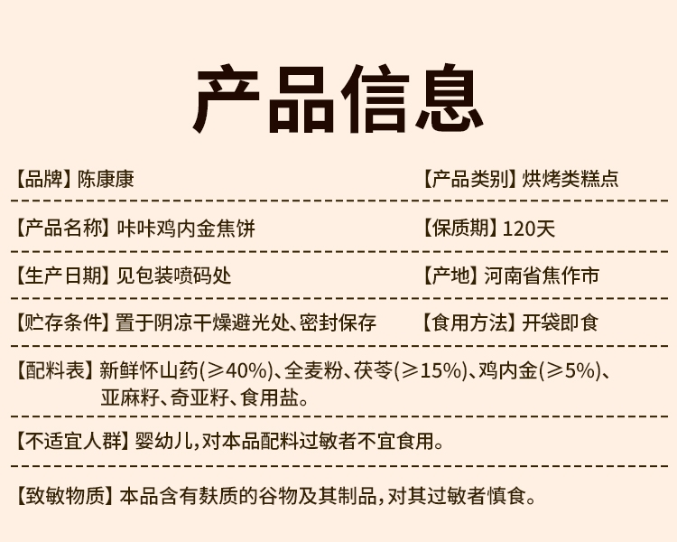 【xiao解ji食】陈康康咔咔味舒饼,鸡内金茯苓焦饼,焦香酥脆,咸香风味,薄如纸张,一嚼即碎,古法研磨,手工制作,低温烘烤,260g/盒