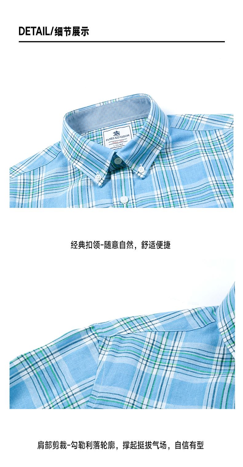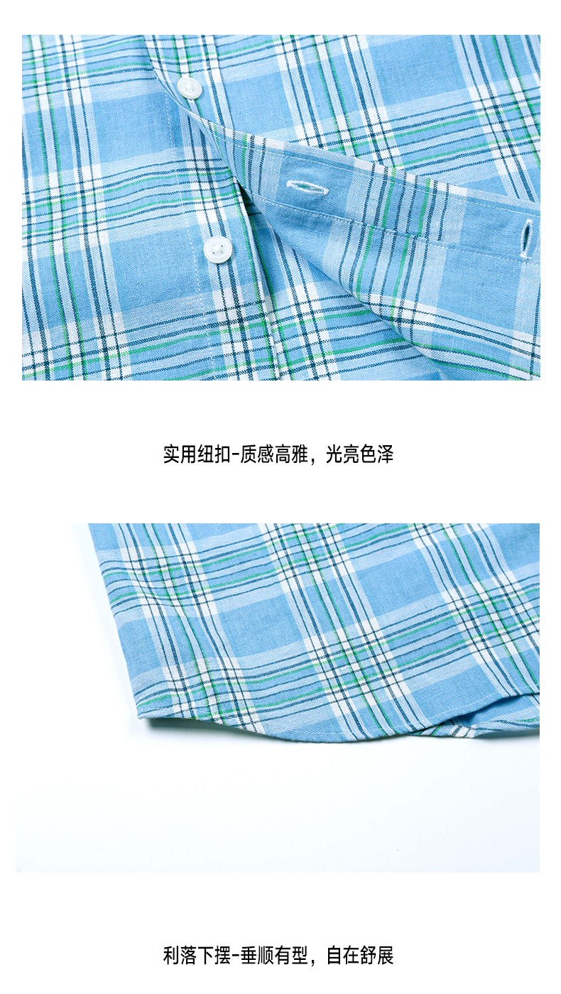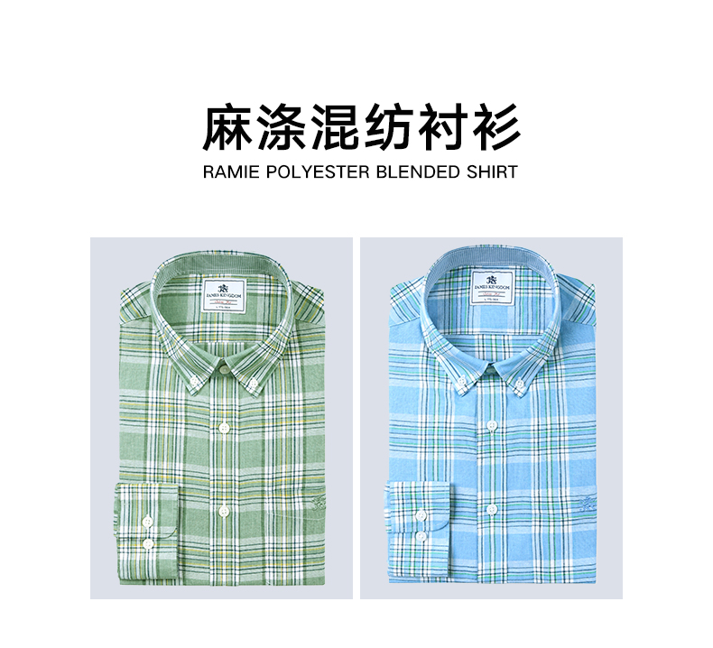 【透气亚麻格纹】占姆士长袖衬衫2025男款初秋休闲中青年麻衬衣