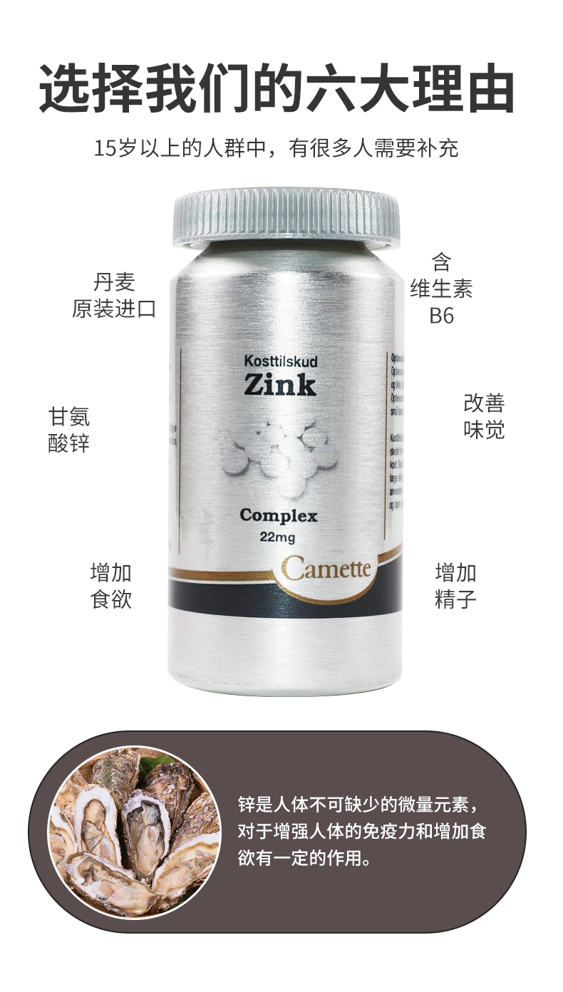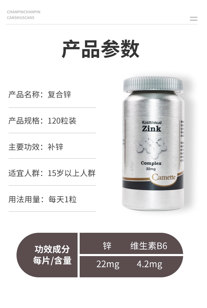 必需微量元素 · 丹麦Camette复合锌片 120粒|保税