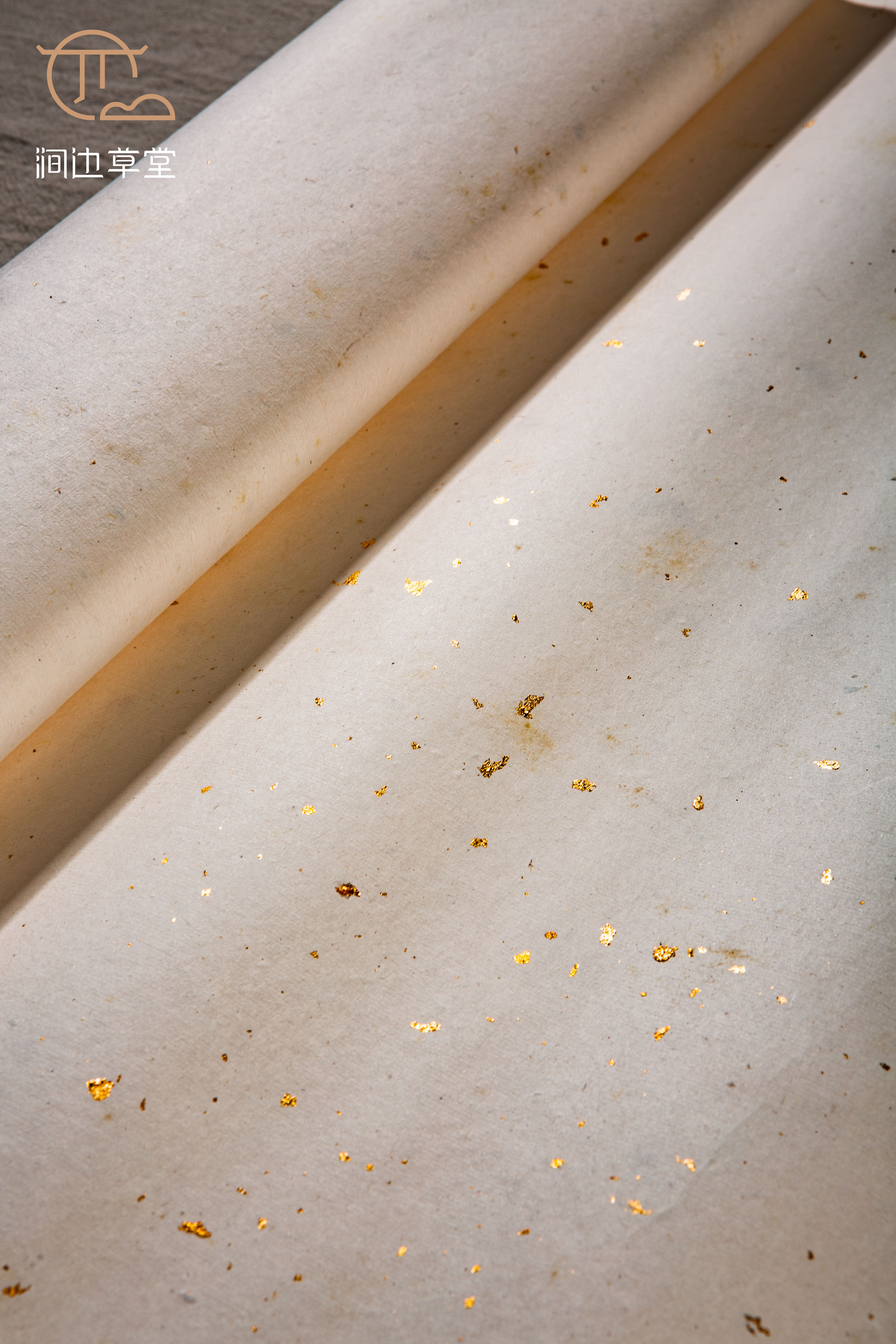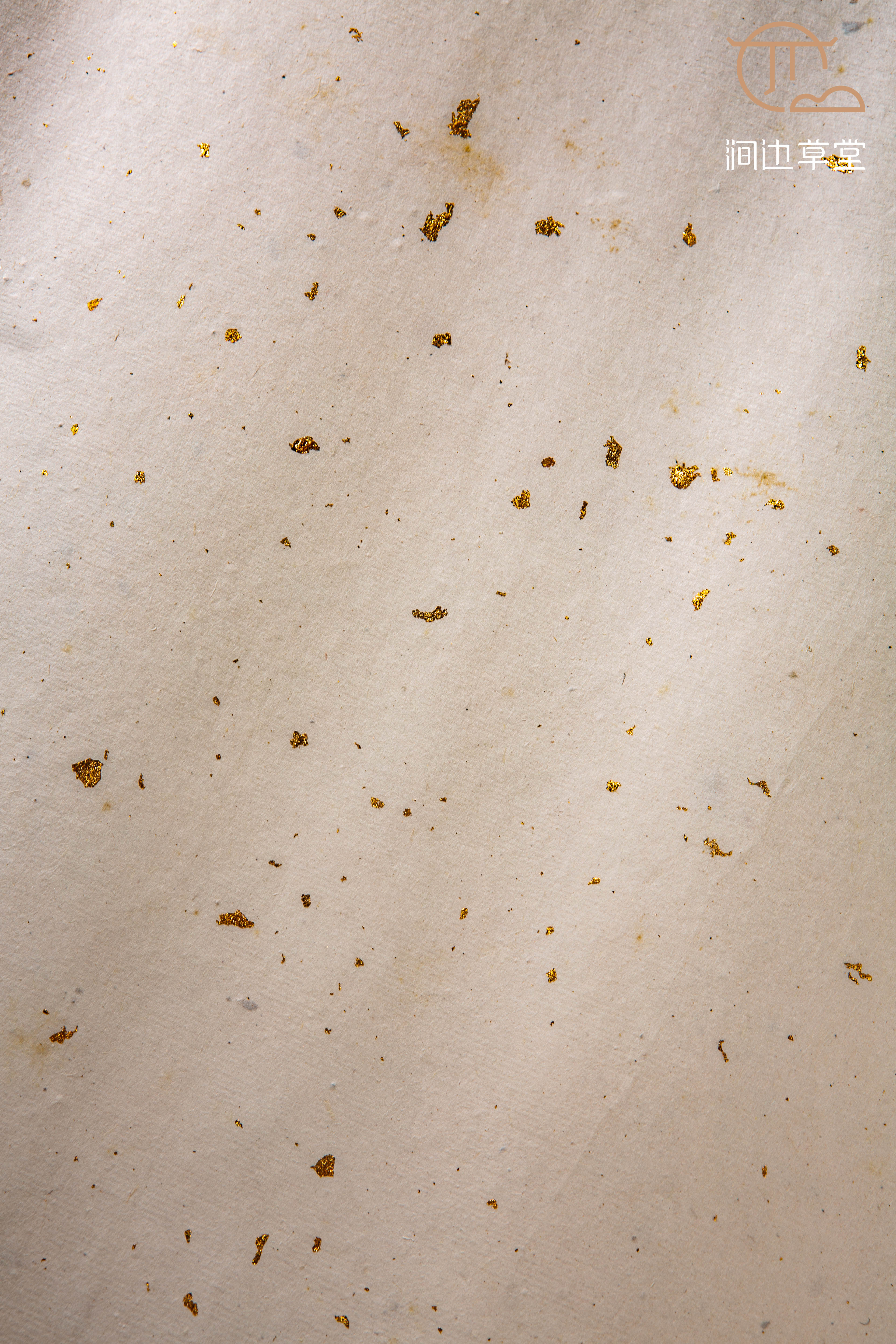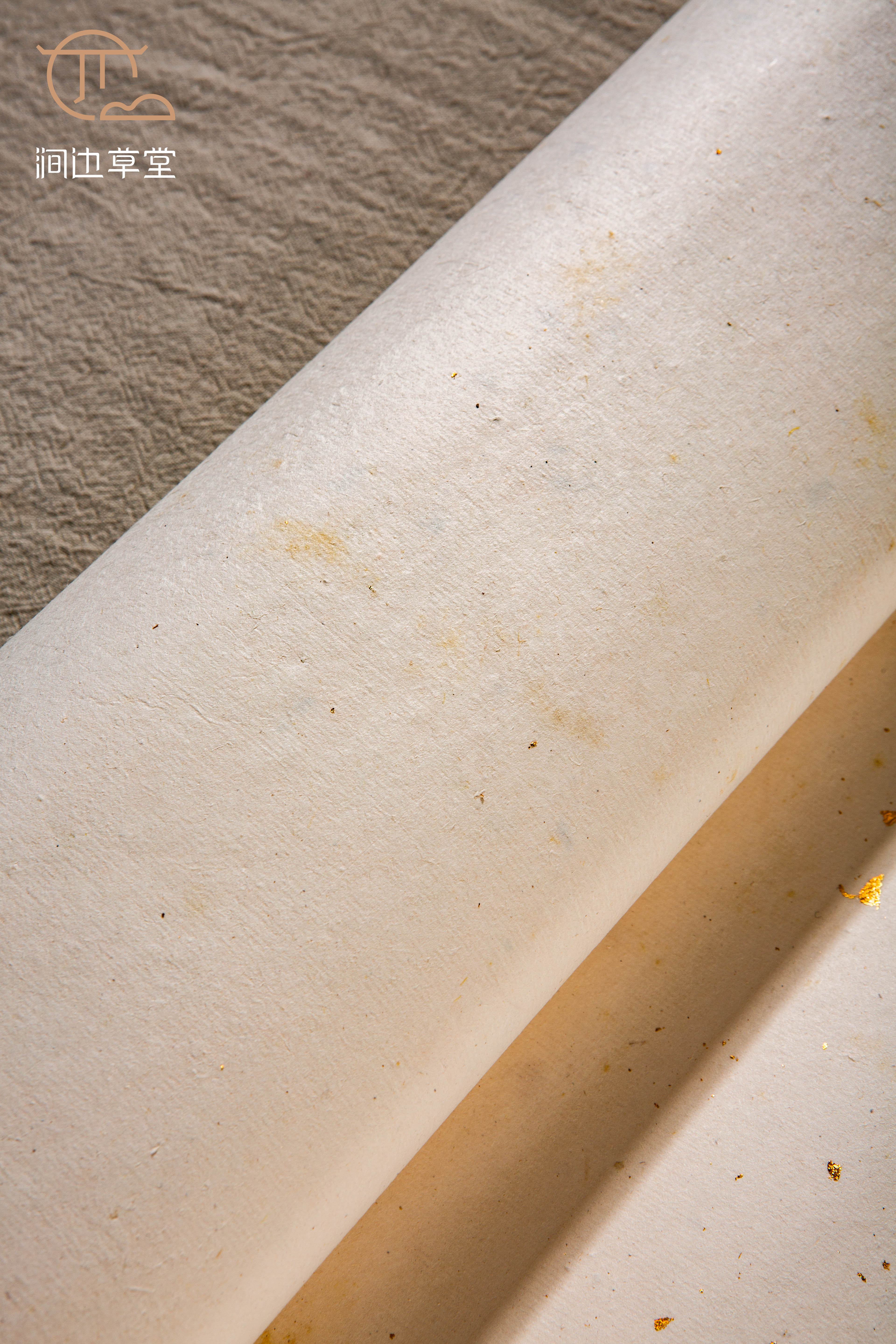 70-80年代安徽十竹斋精制洒金纸,纸张颜色纯正清雅,洒真金光彩夺目,纸质精良,工艺精细。十竹斋是始创于明代的老字号,其所造纸张自古皆为上品,十分难得。