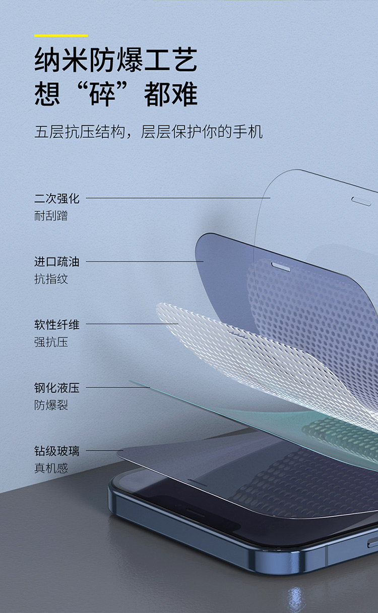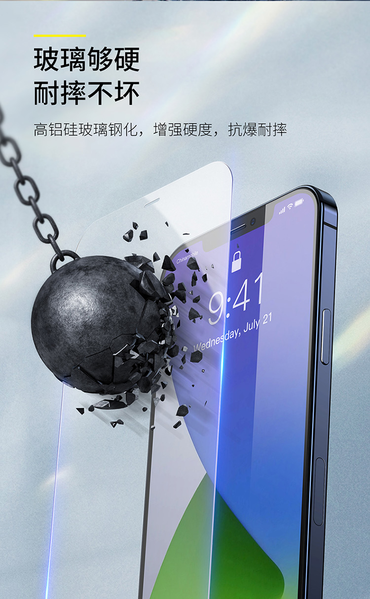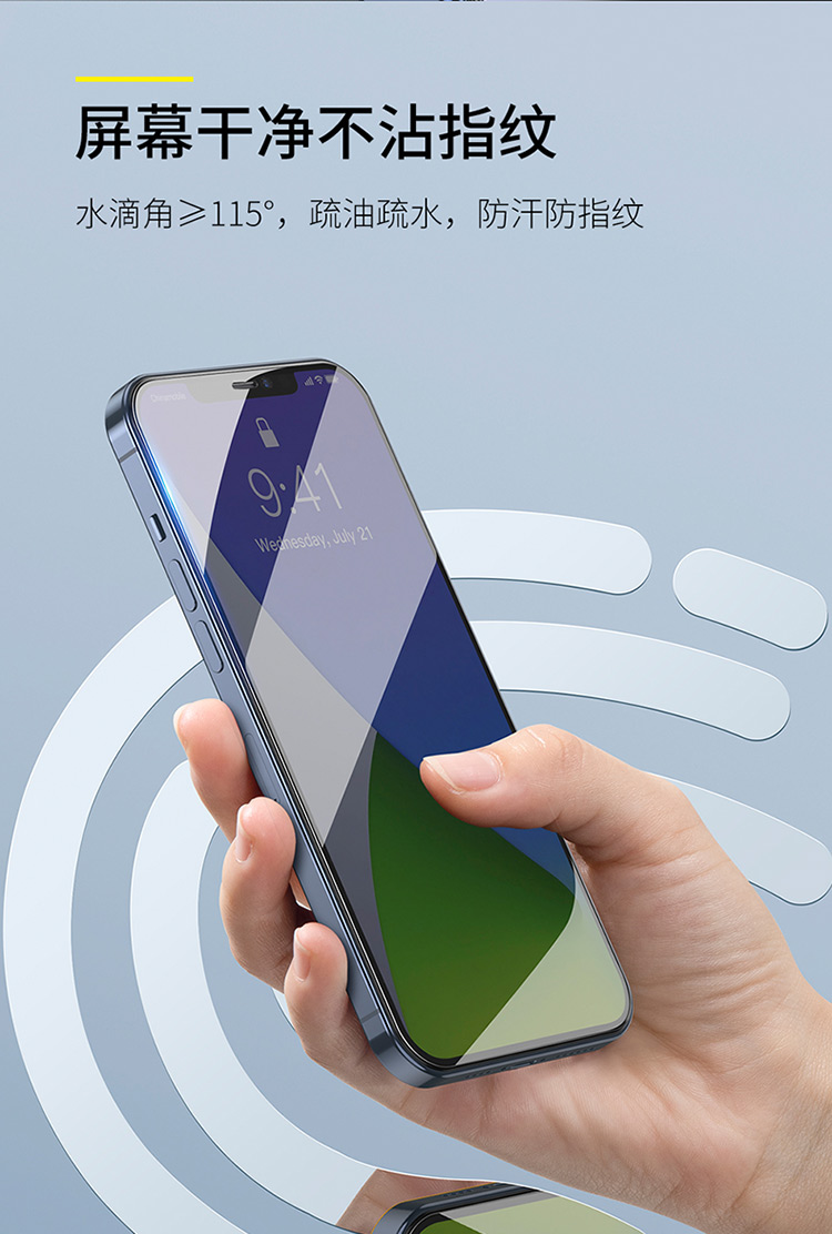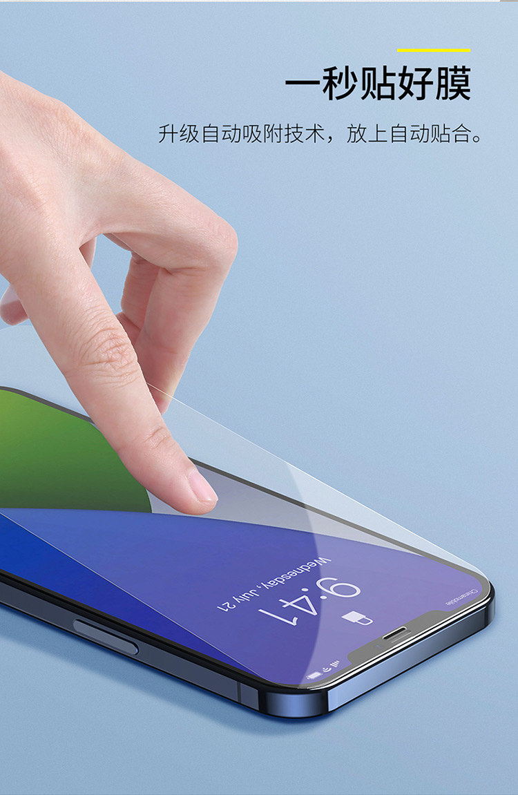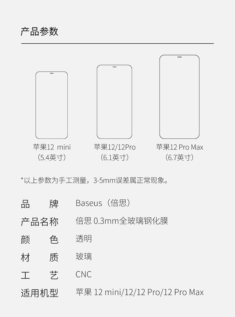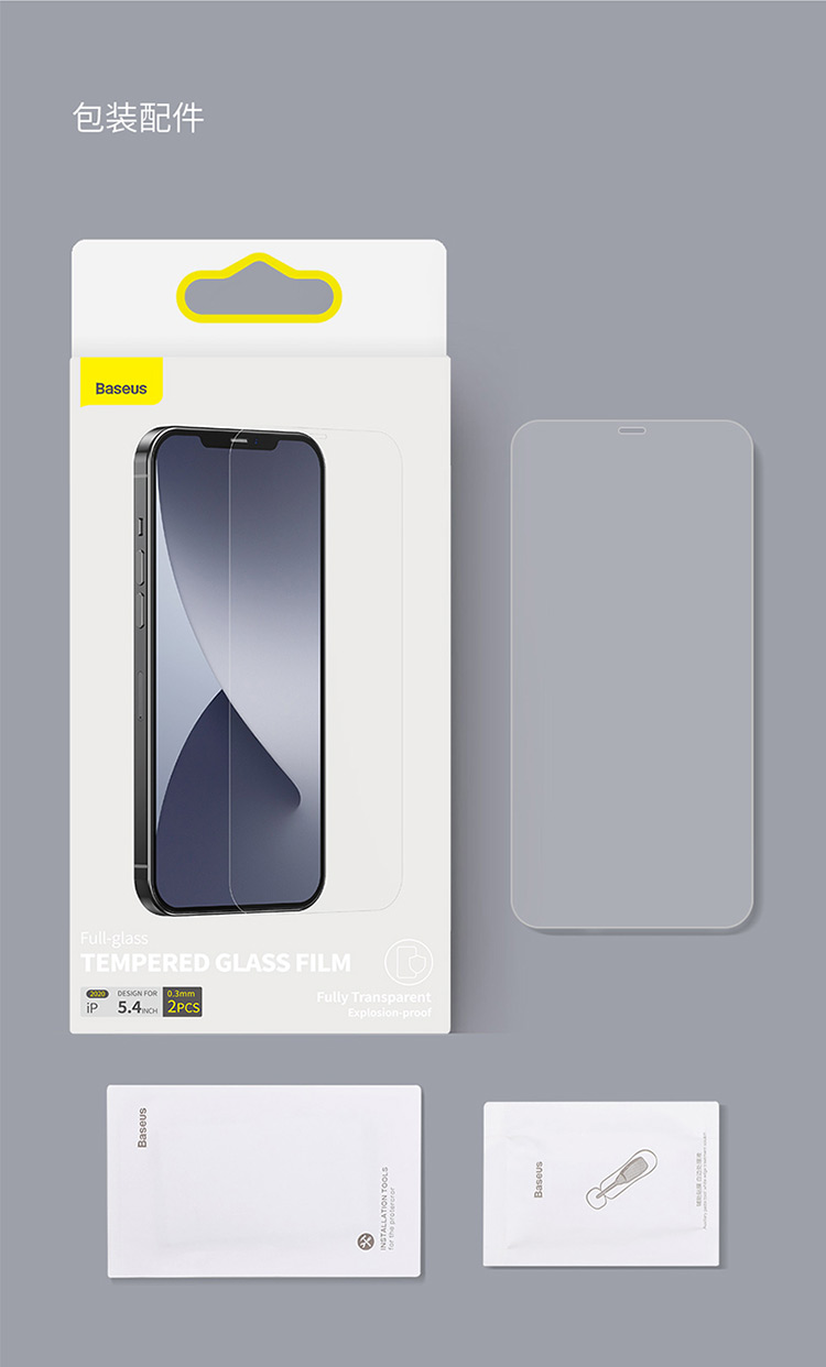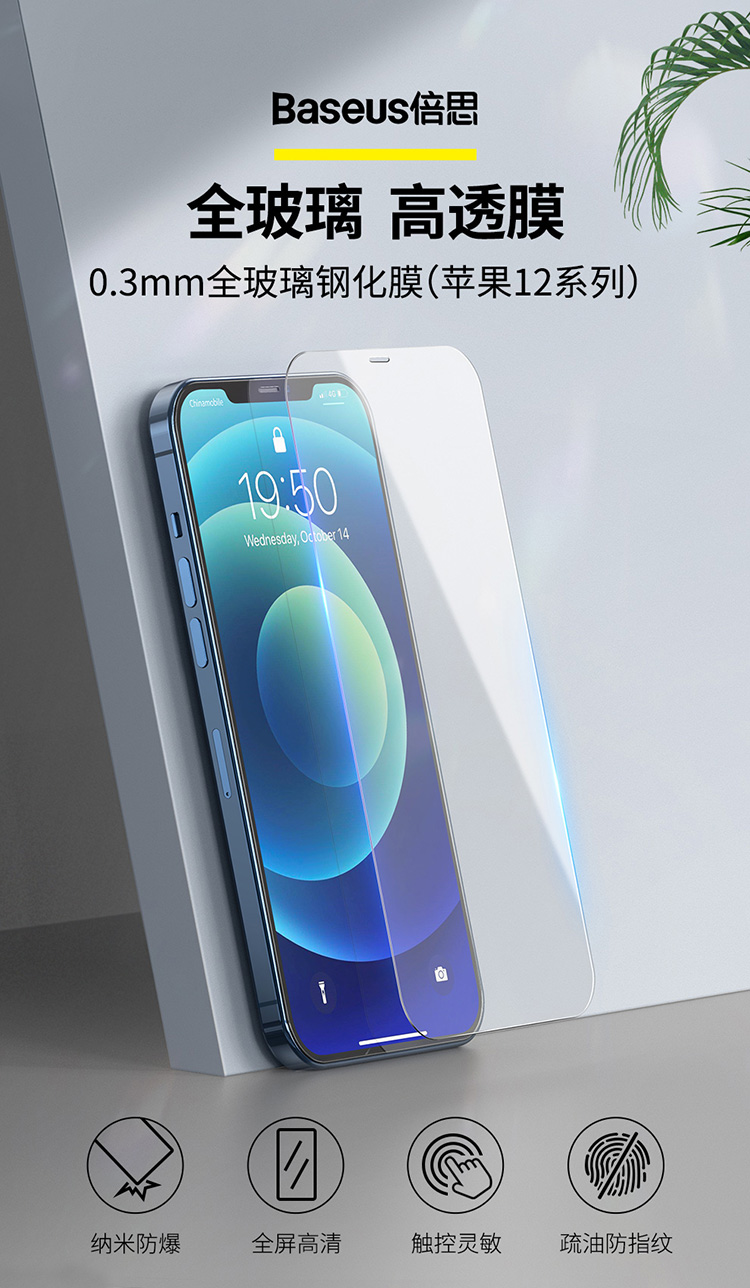 倍思 0.3mm全玻璃钢化膜 For iP 12系列(两片装+贴膜神器)透明(含:清洁包*1)
