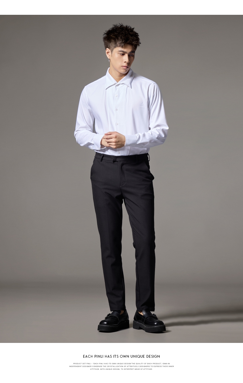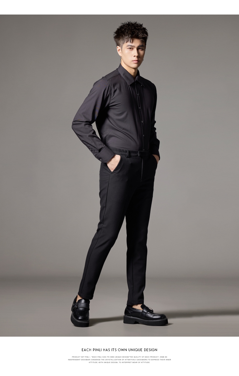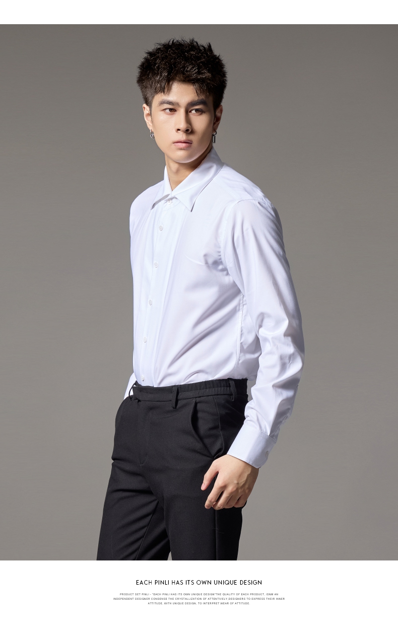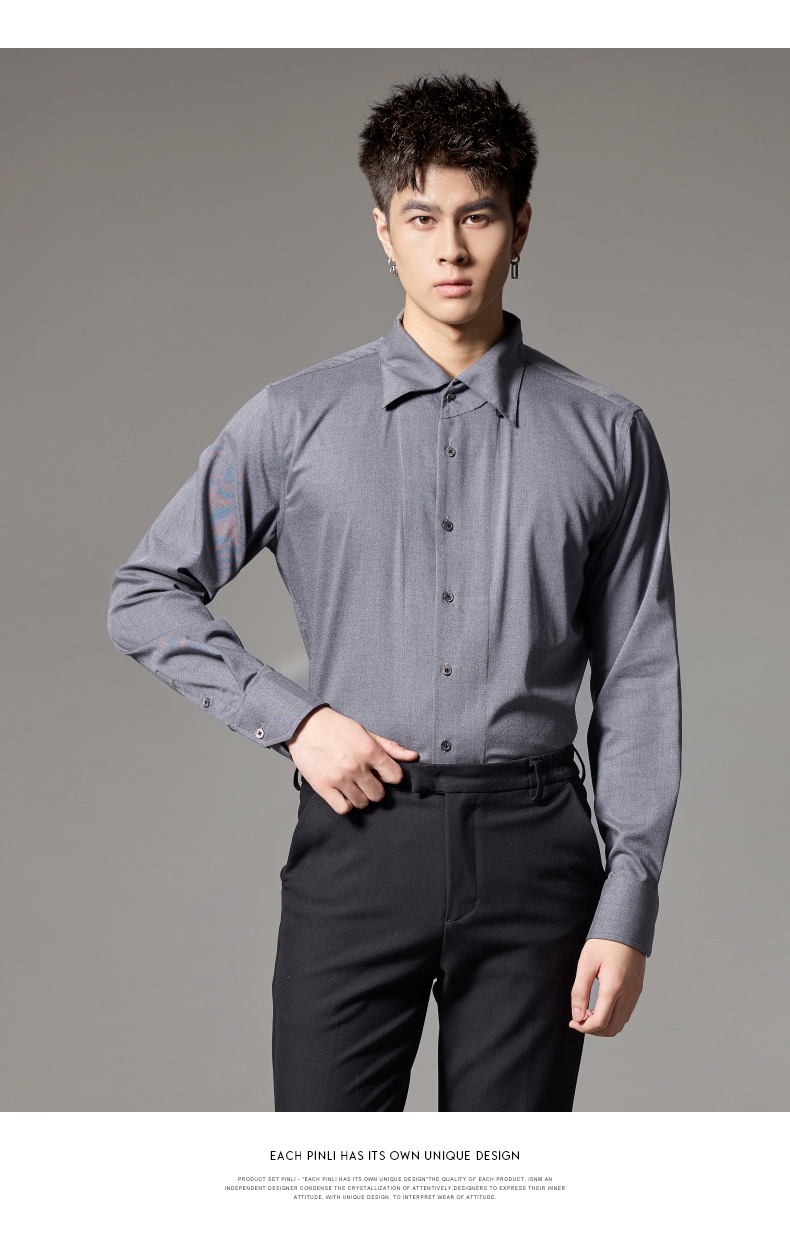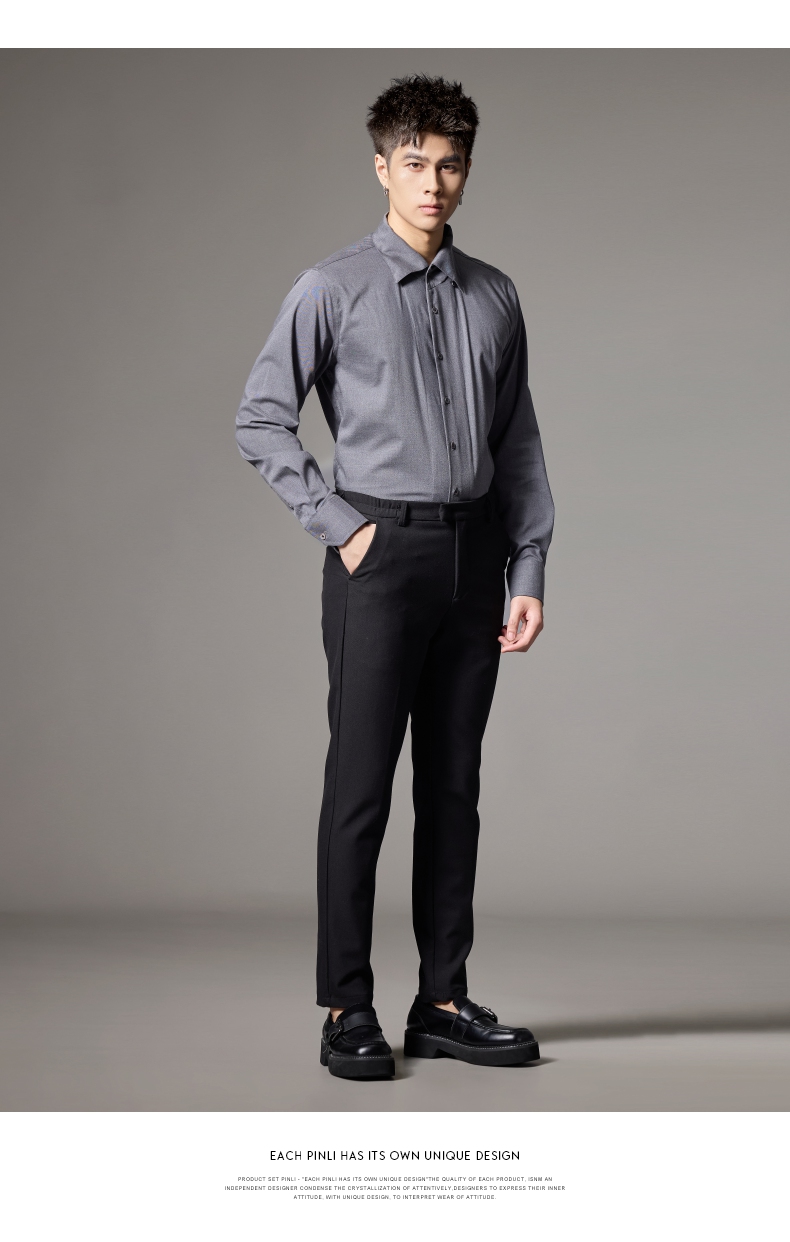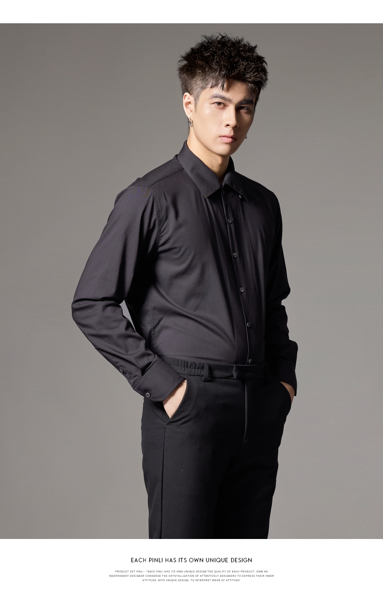 PINLI品立2024秋季新款男士修身尖领纯色打底长袖衬衫GD243213379