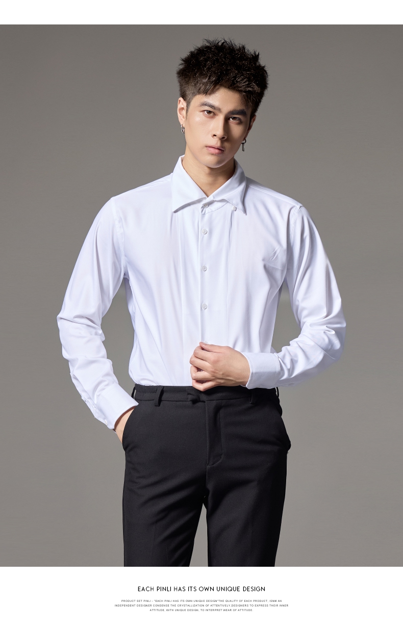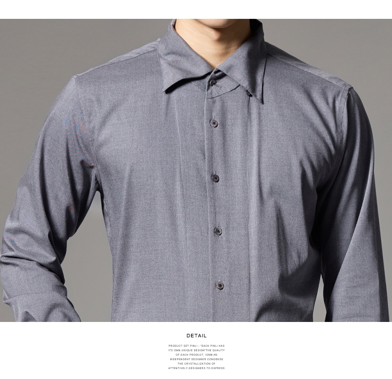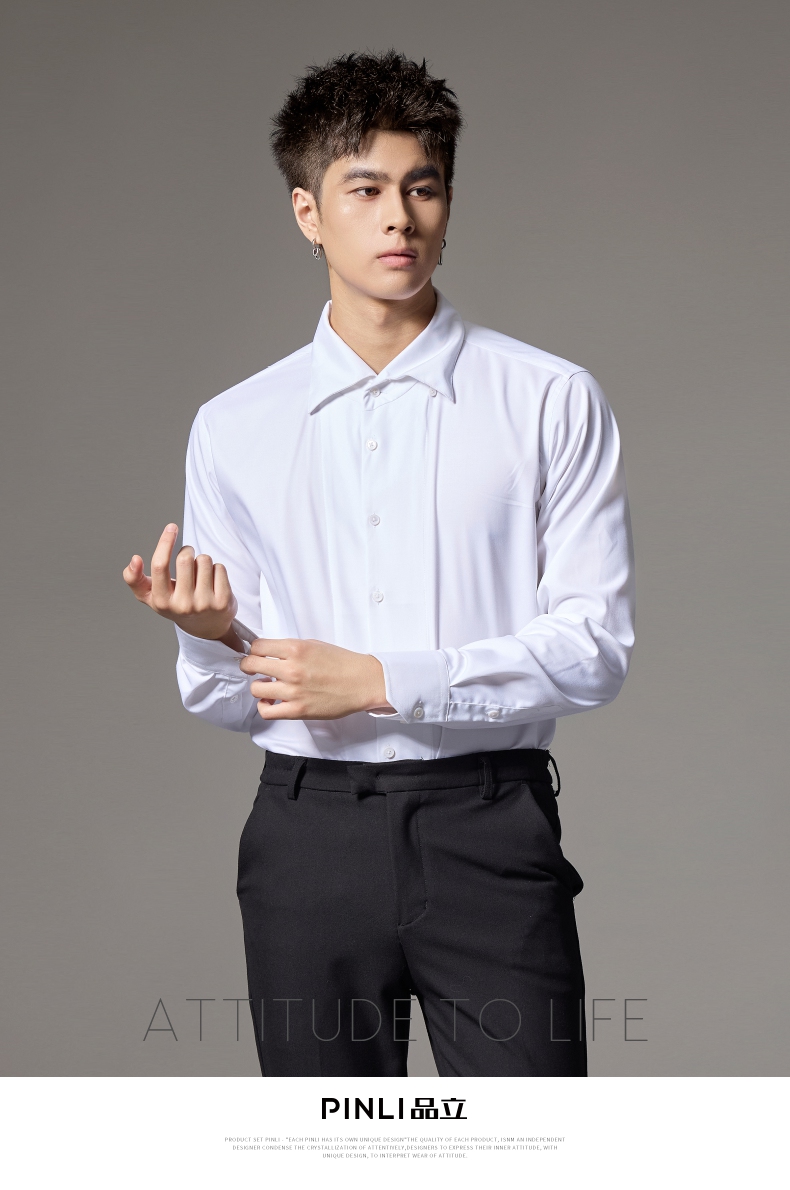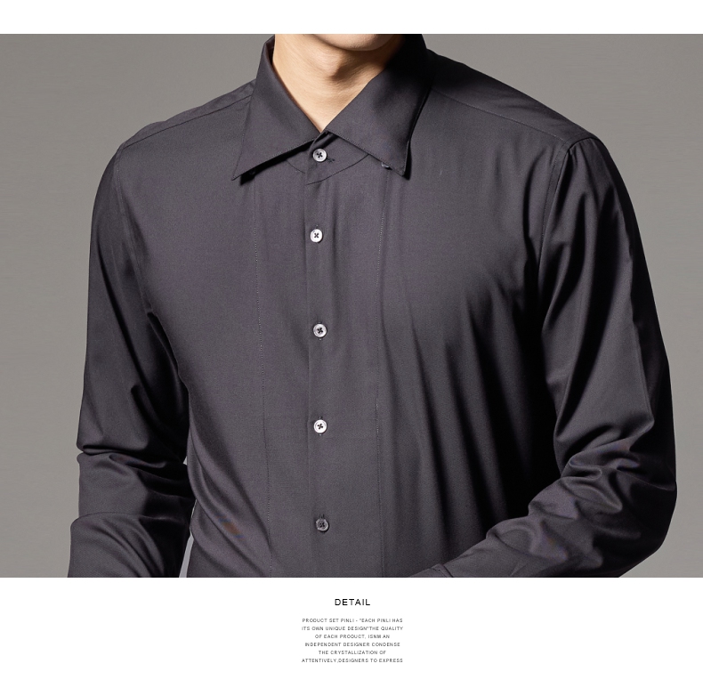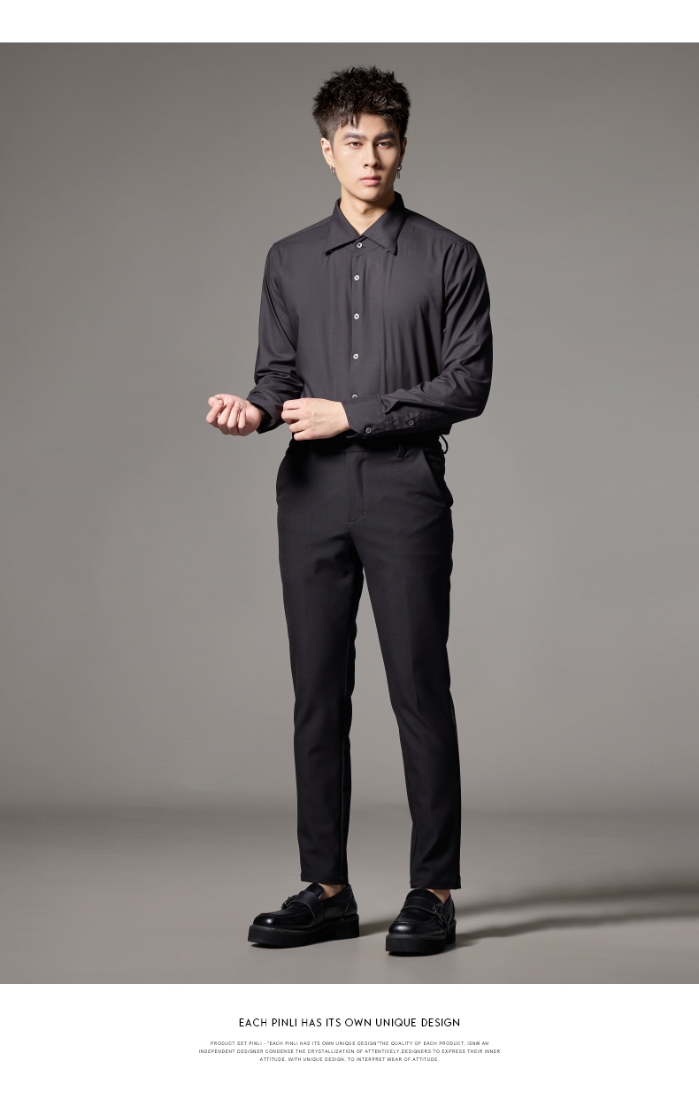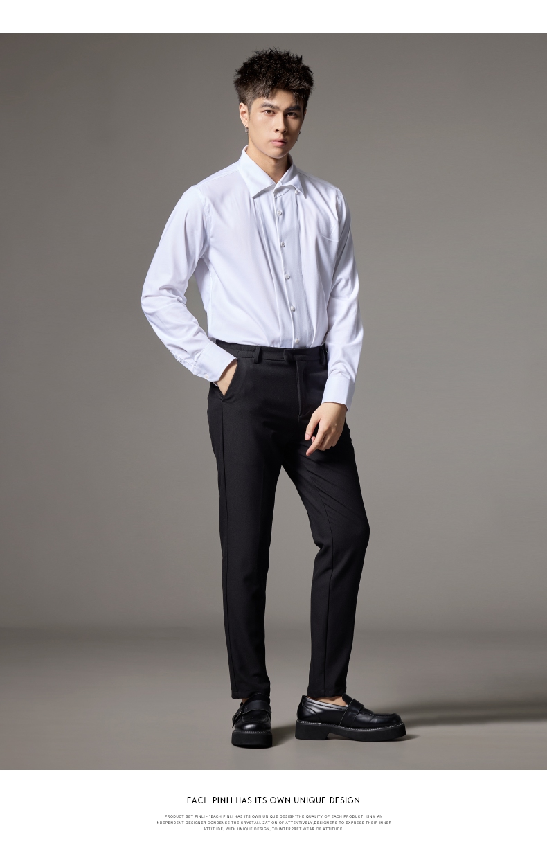 PINLI品立2024秋季新款男士修身尖领纯色打底长袖衬衫GD243213379