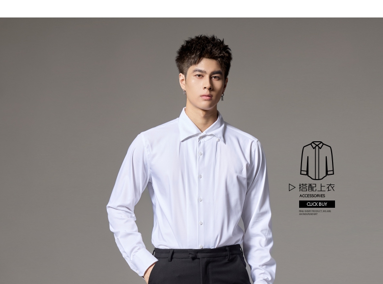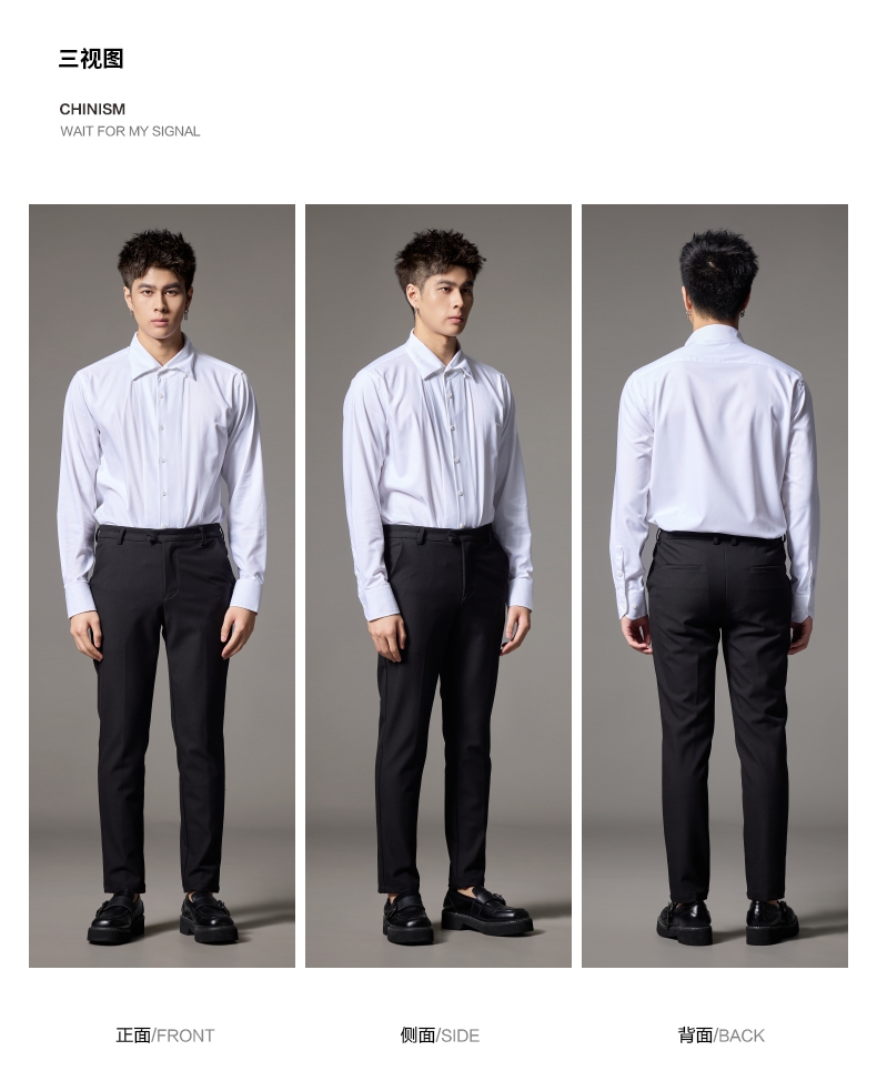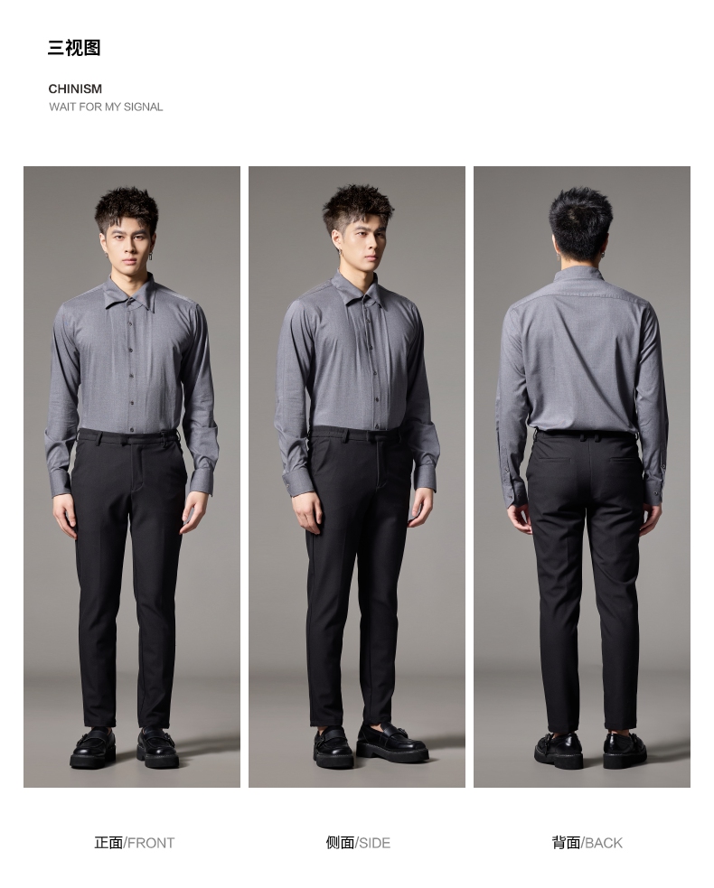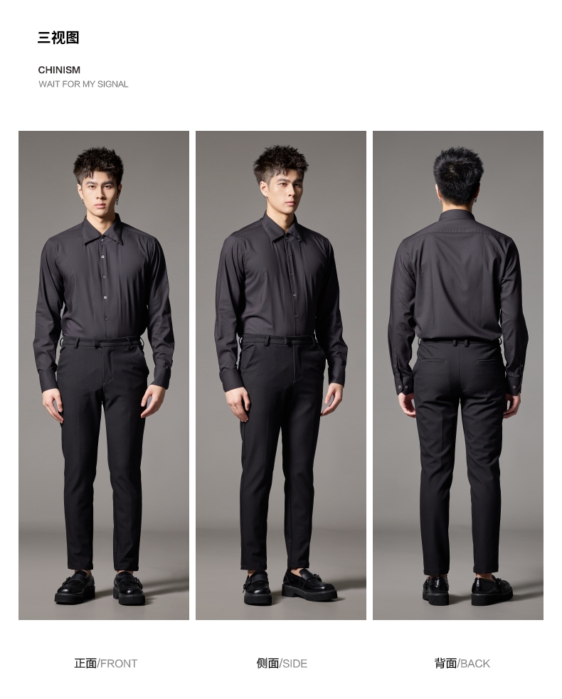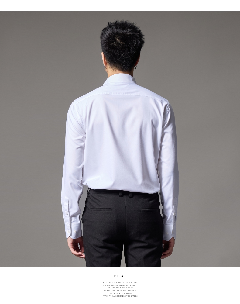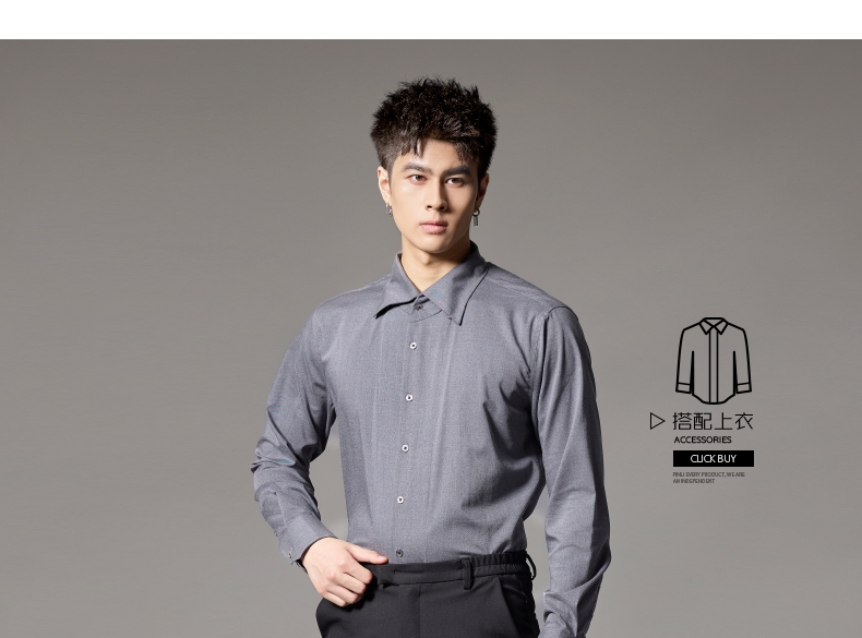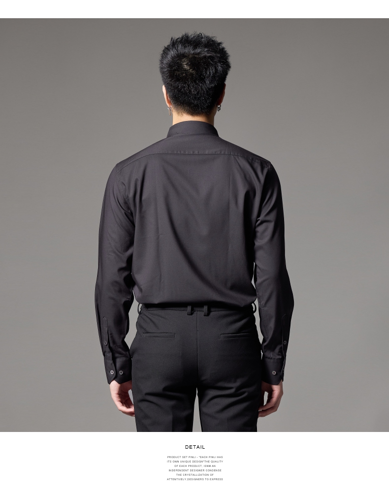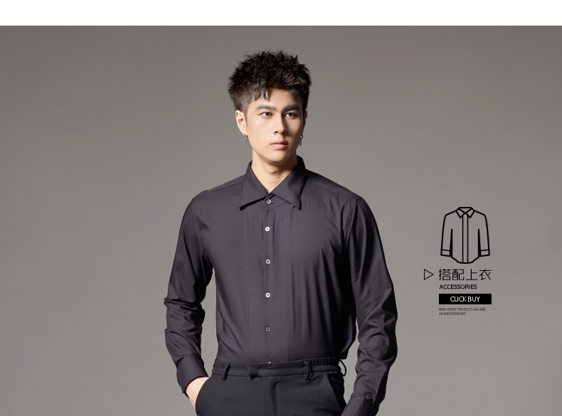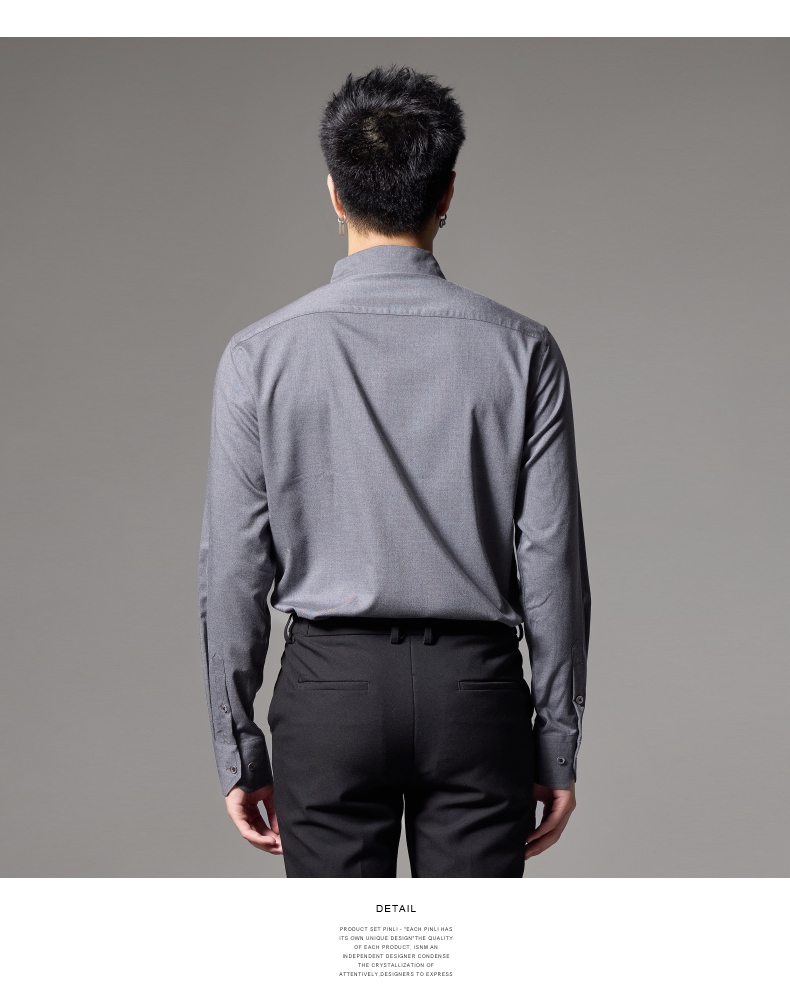 PINLI品立2024秋季新款男士修身尖领纯色打底长袖衬衫GD243213379