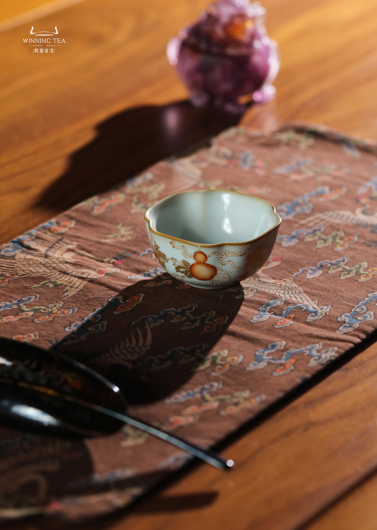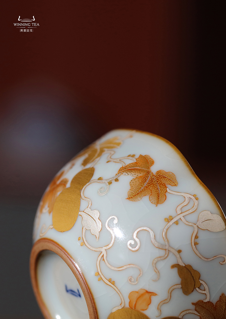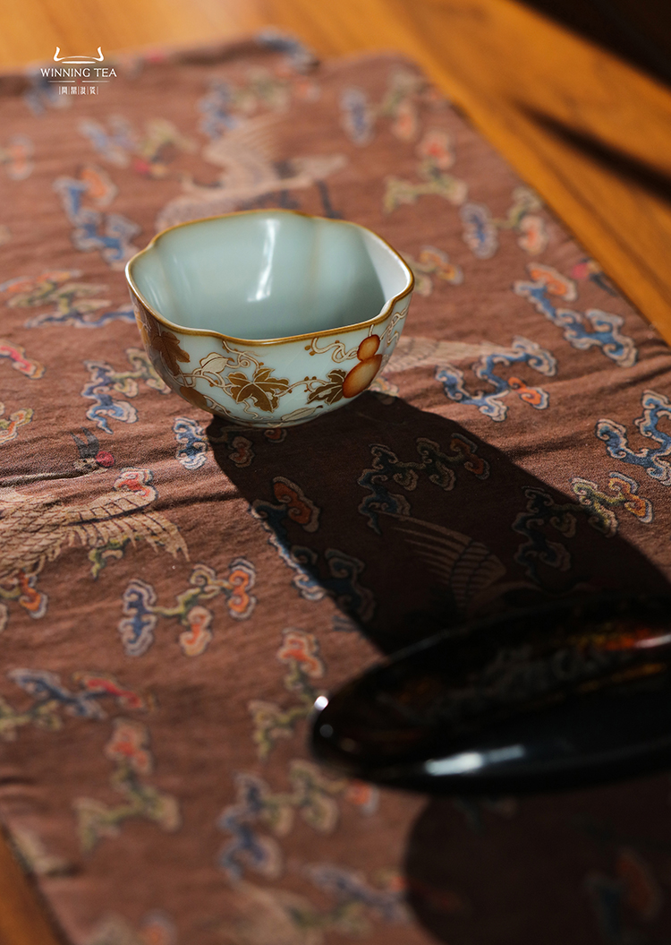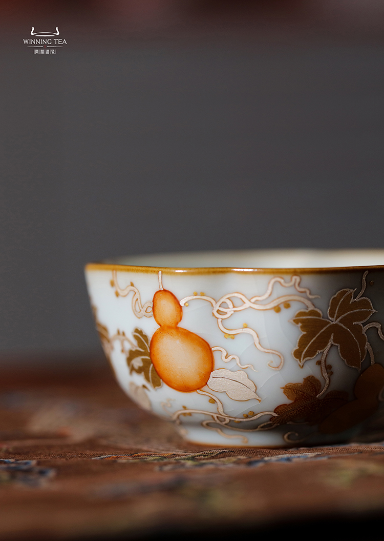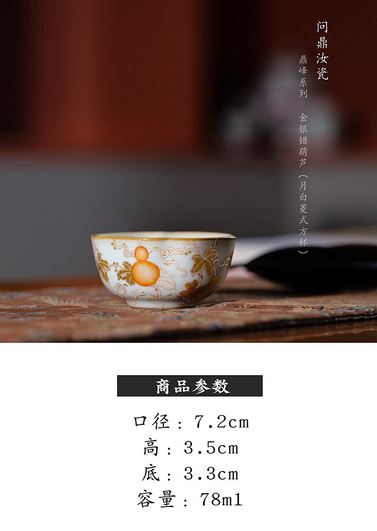 问鼎汝瓷鼎峰系列月白菱式方杯(金银错葫芦)(缺货)
