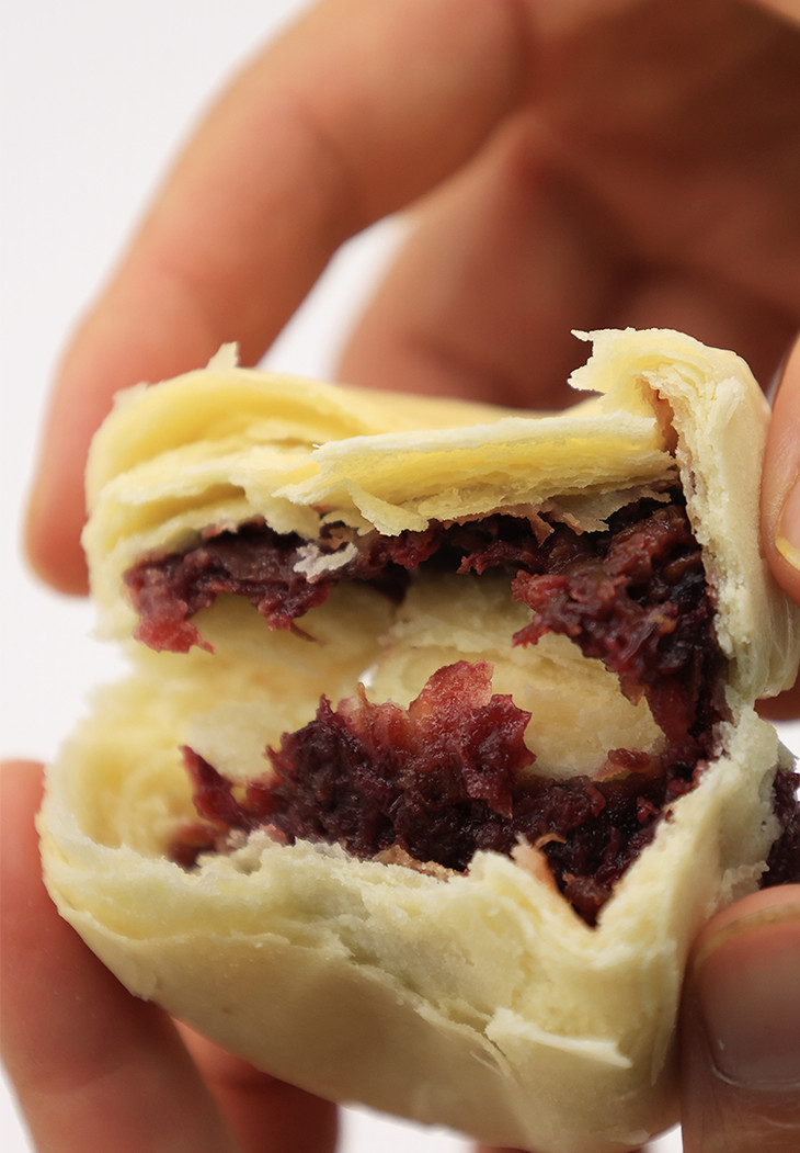此饼也叫太白嫣红,太白是饼皮的色泽,嫣红是玫瑰的俏丽妩媚;另外,太白是金星,最早出现在清晨东方的地平线,寓意着做饼人披星戴月,用勤劳创造美好。