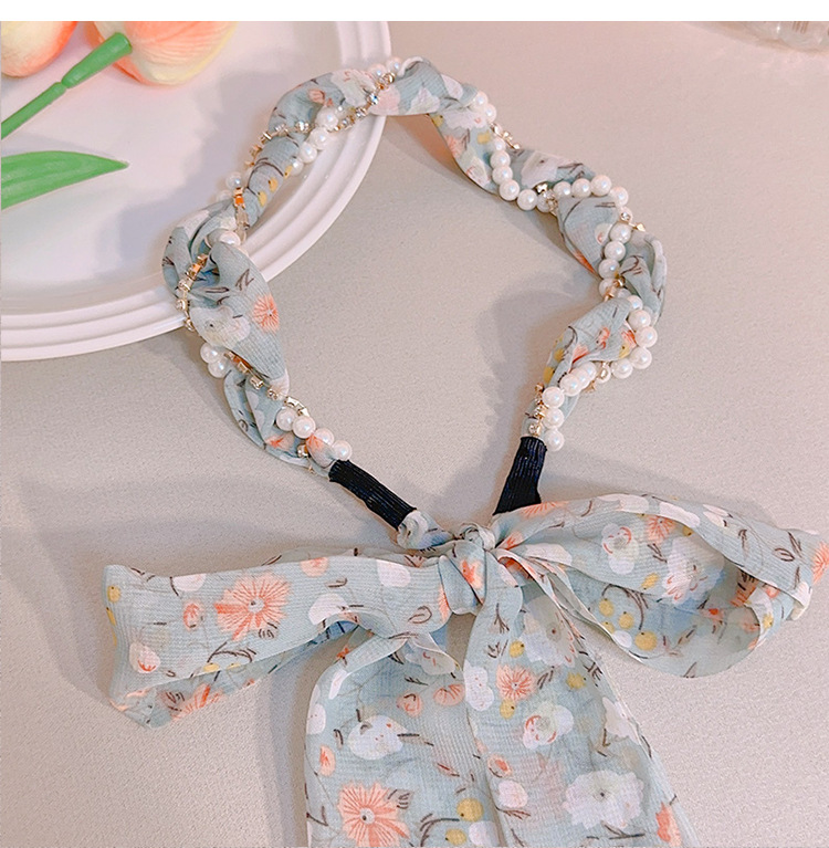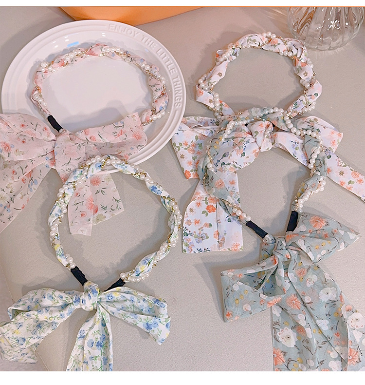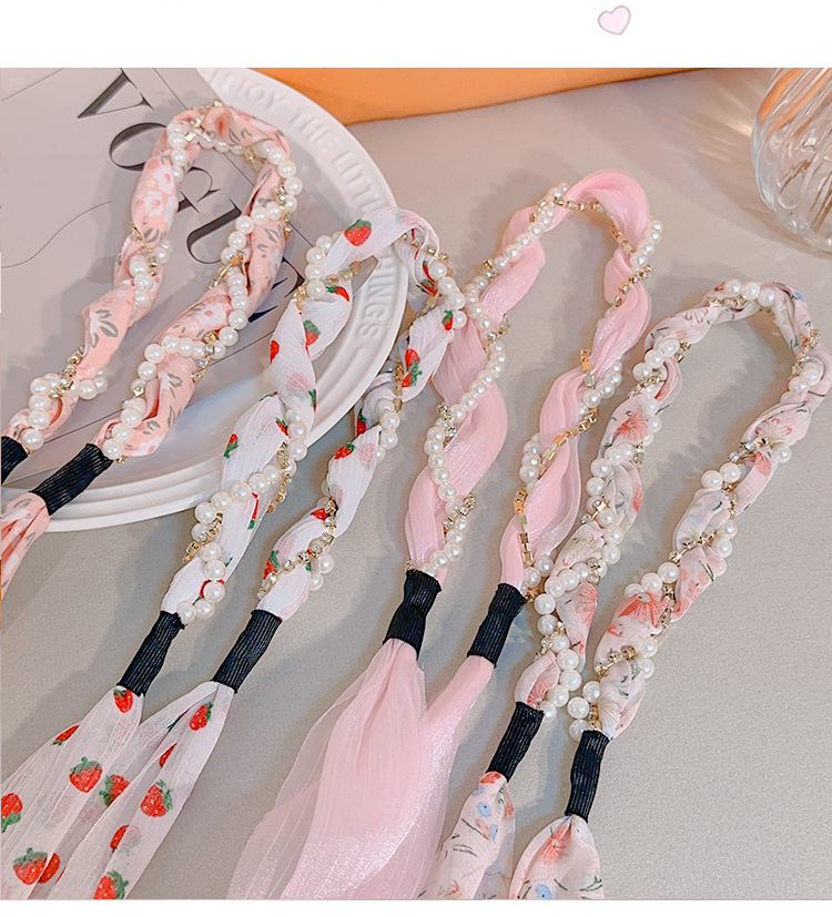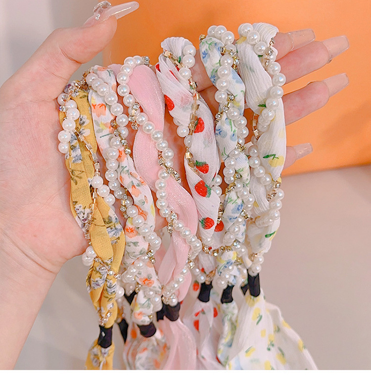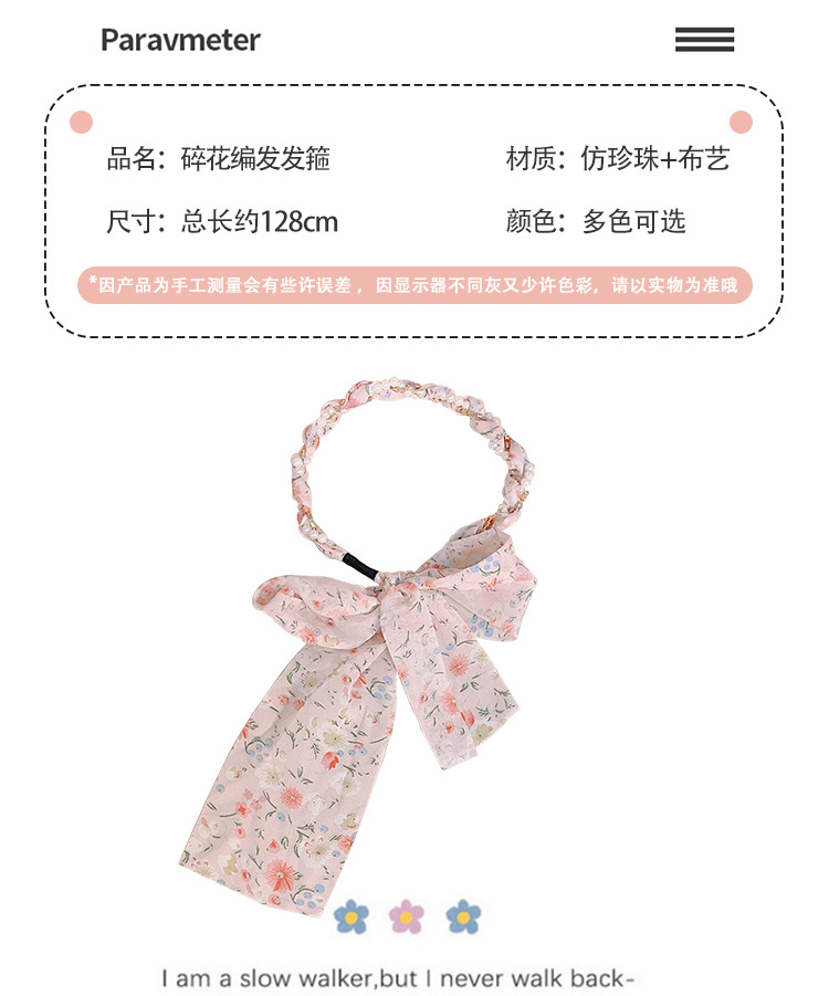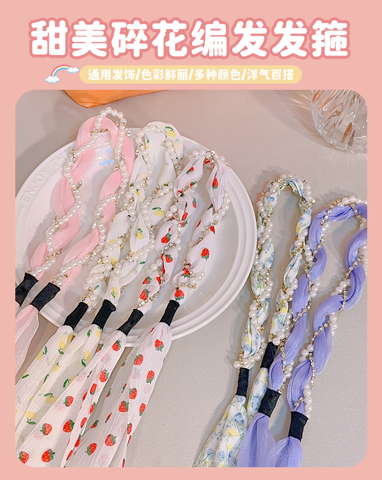 韩版ins风碎花发带珍珠水钻缠绕编发发箍蝴蝶结水果编发丝带发带
