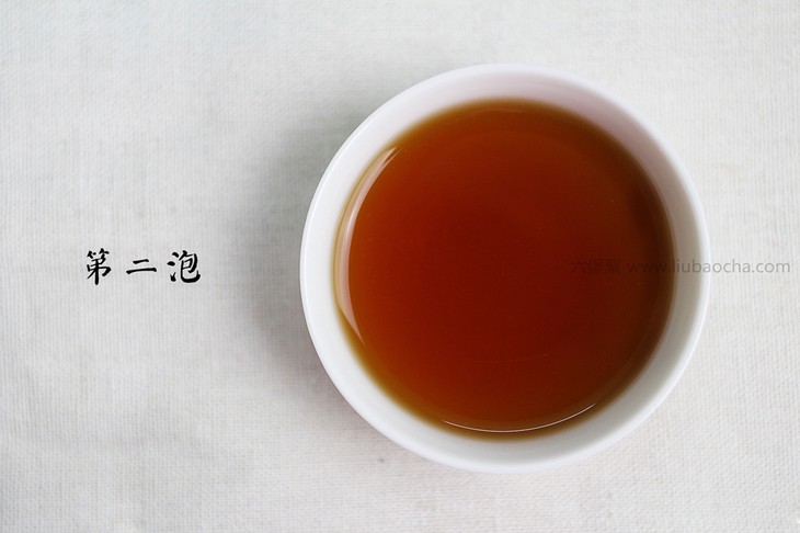 茶汤汤色棕红,透亮干净。陈香味现显、木香。经过近十年的陈化,口感饱满、柔滑顺爽,甜醇绵柔,滋味纯正,正是适合品饮的时期。