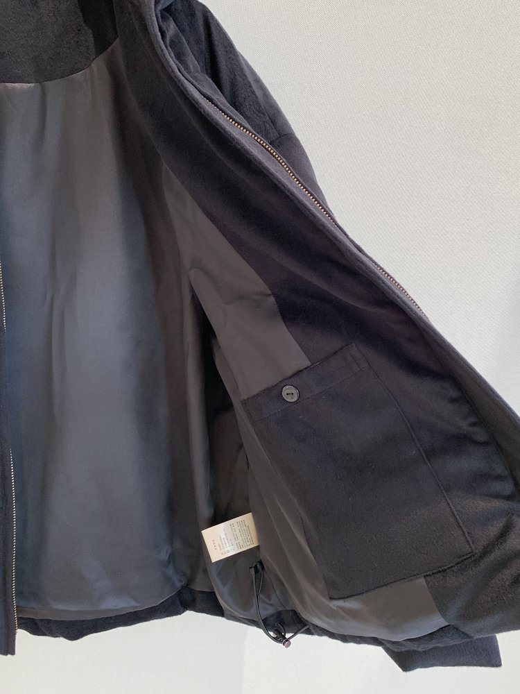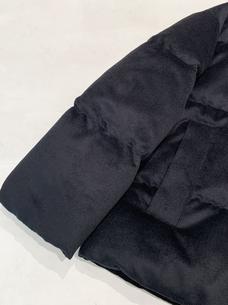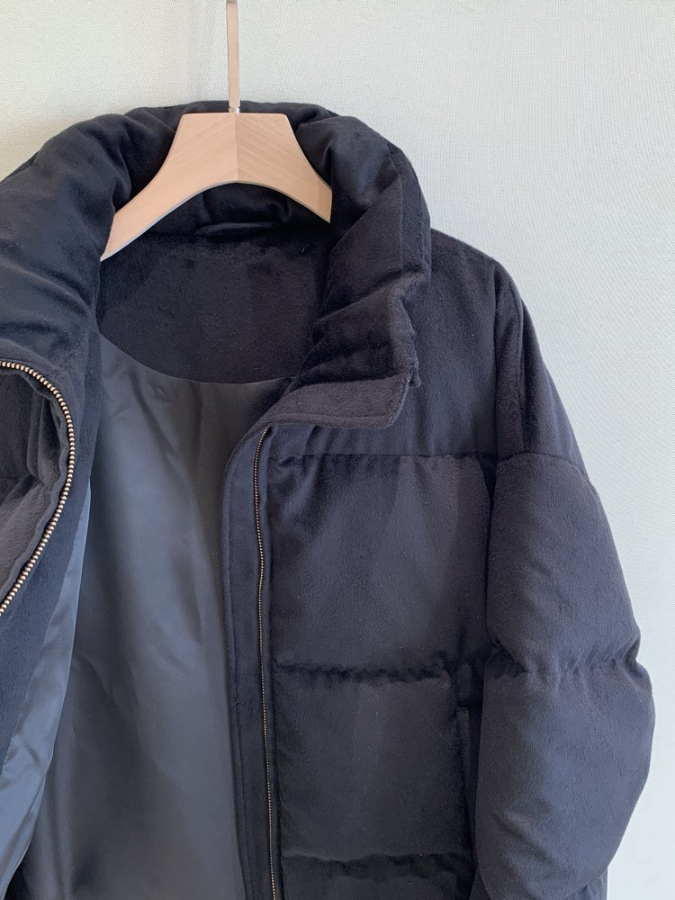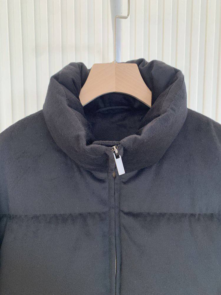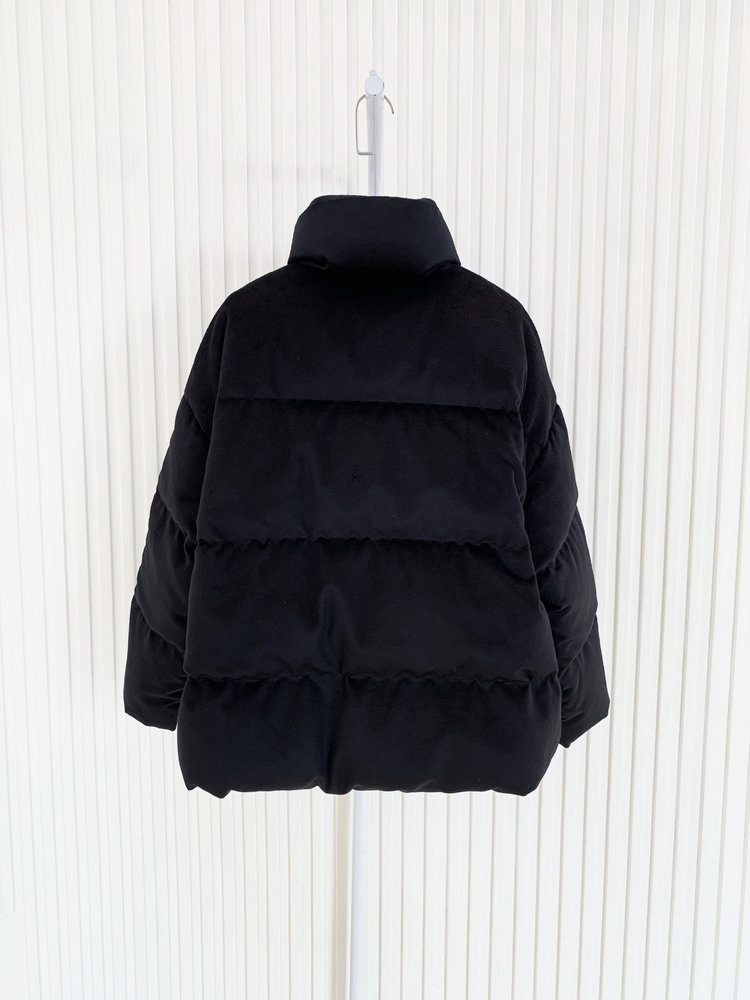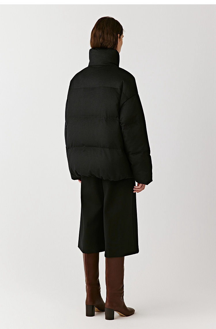 简约立领设计短版鹅绒服 丝驼绒羽绒服 充绒饱满 骆驼绒与桑蚕丝混纺织造面料 90鹅绒填充 落肩廓形 下摆可调节抽绳