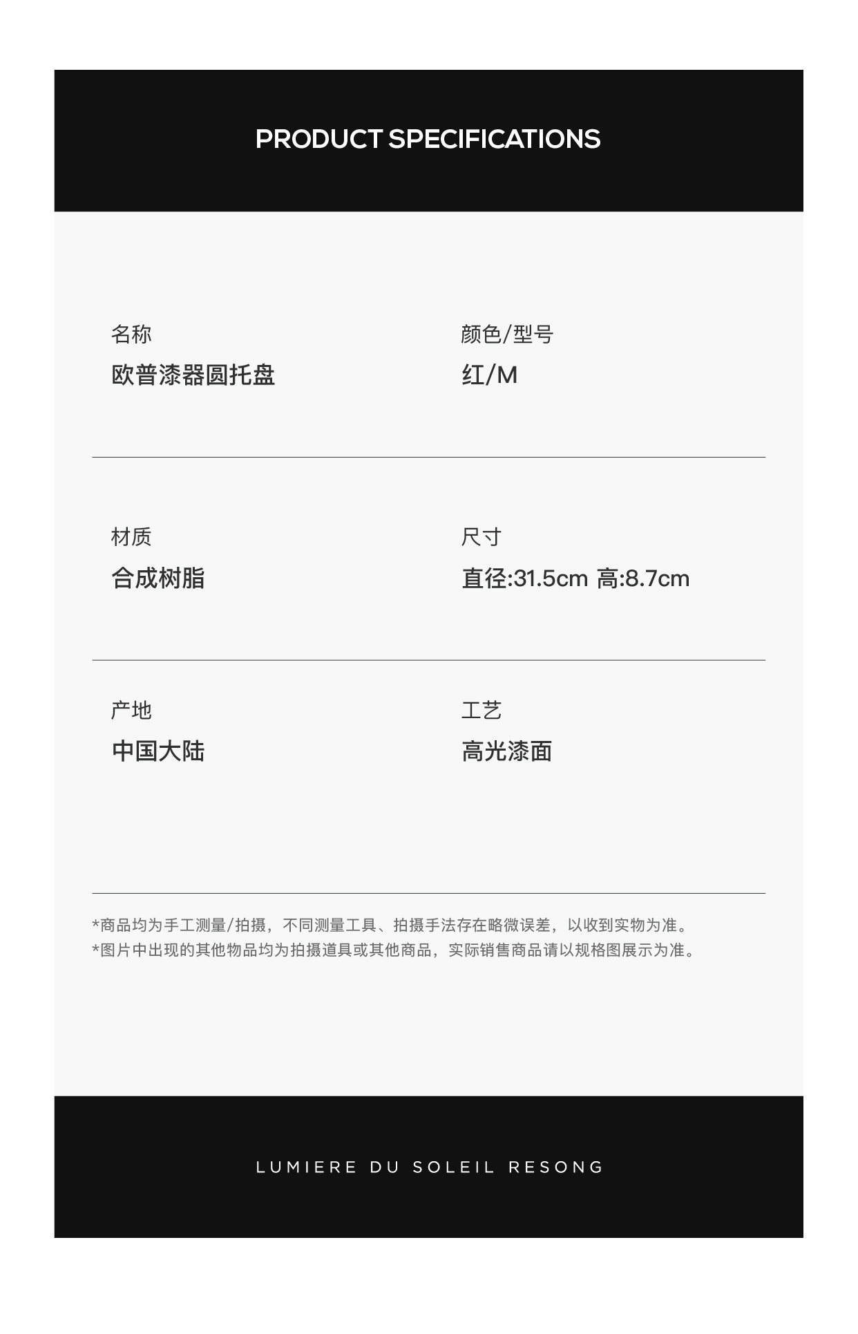 欧普漆器圆托盘 红色 RESONG日诵家居