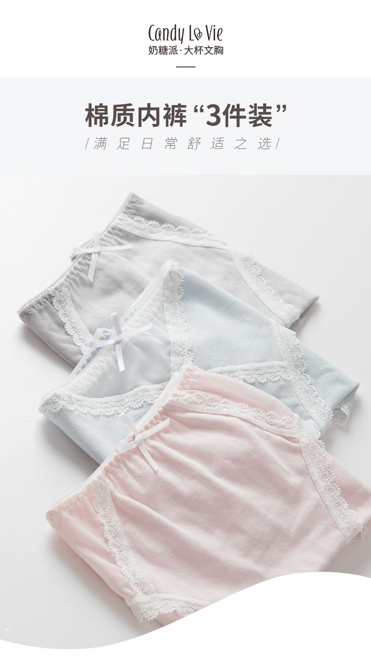 奶糖派配套内裤组合三角低腰纯棉亲肤透气3件装女薄款夏季