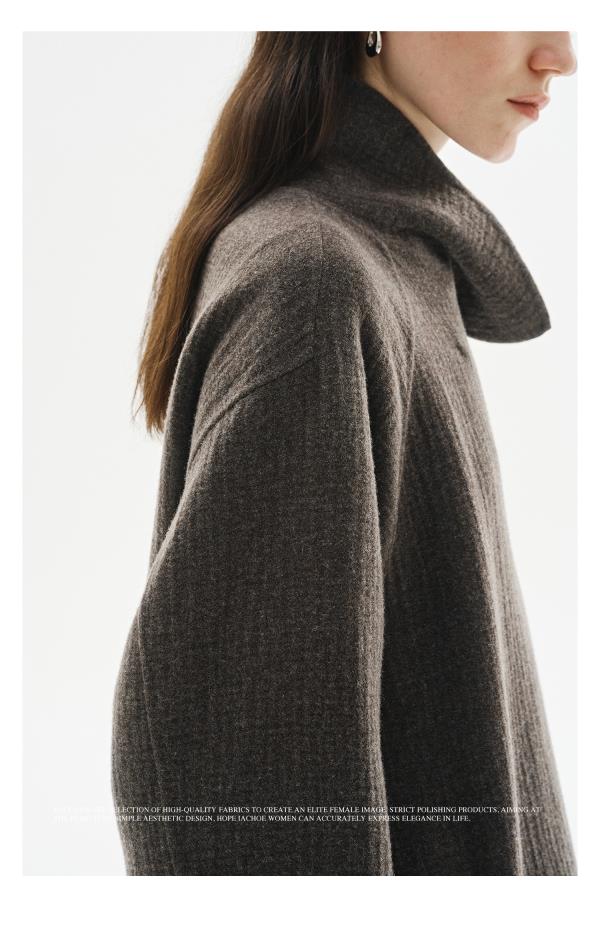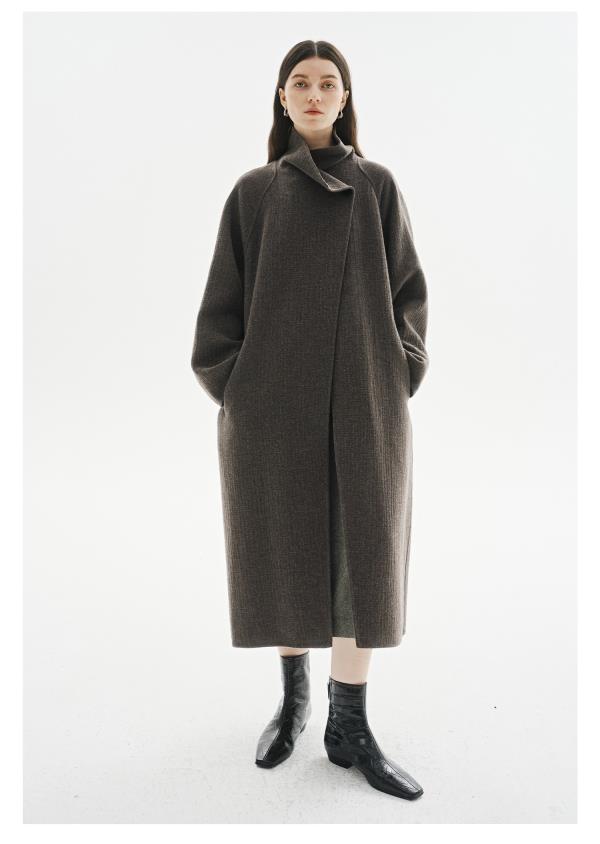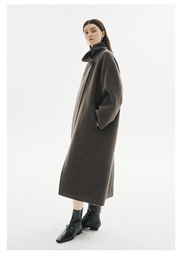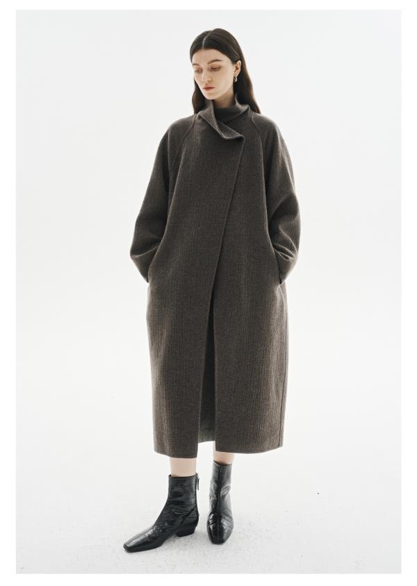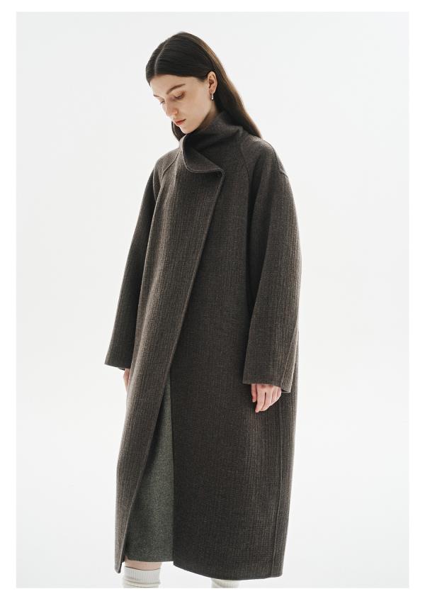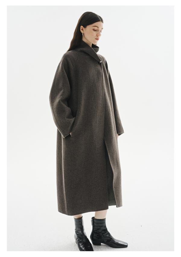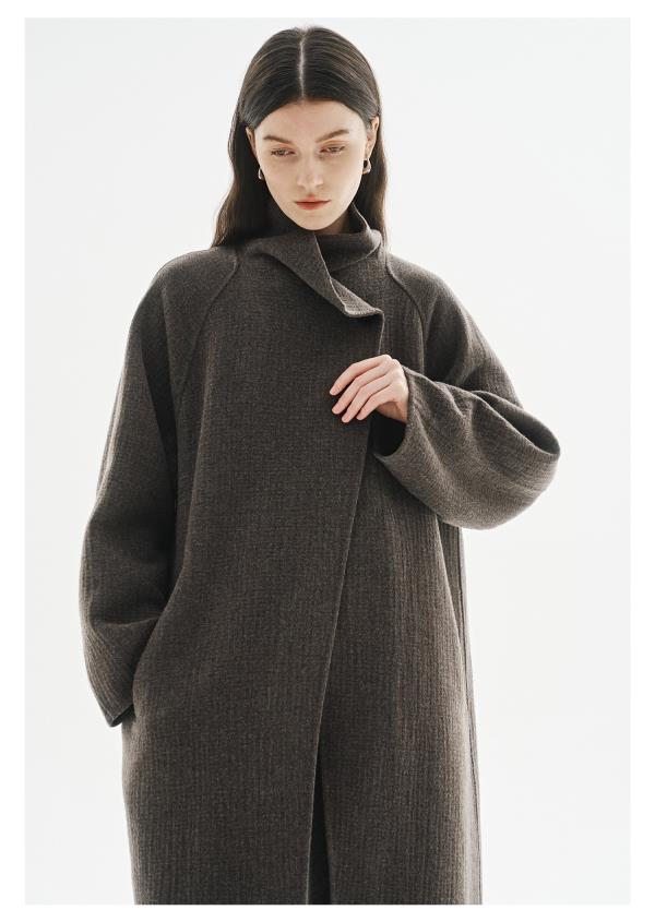 棉仓3571566002-肌理感长款毛呢大衣女装