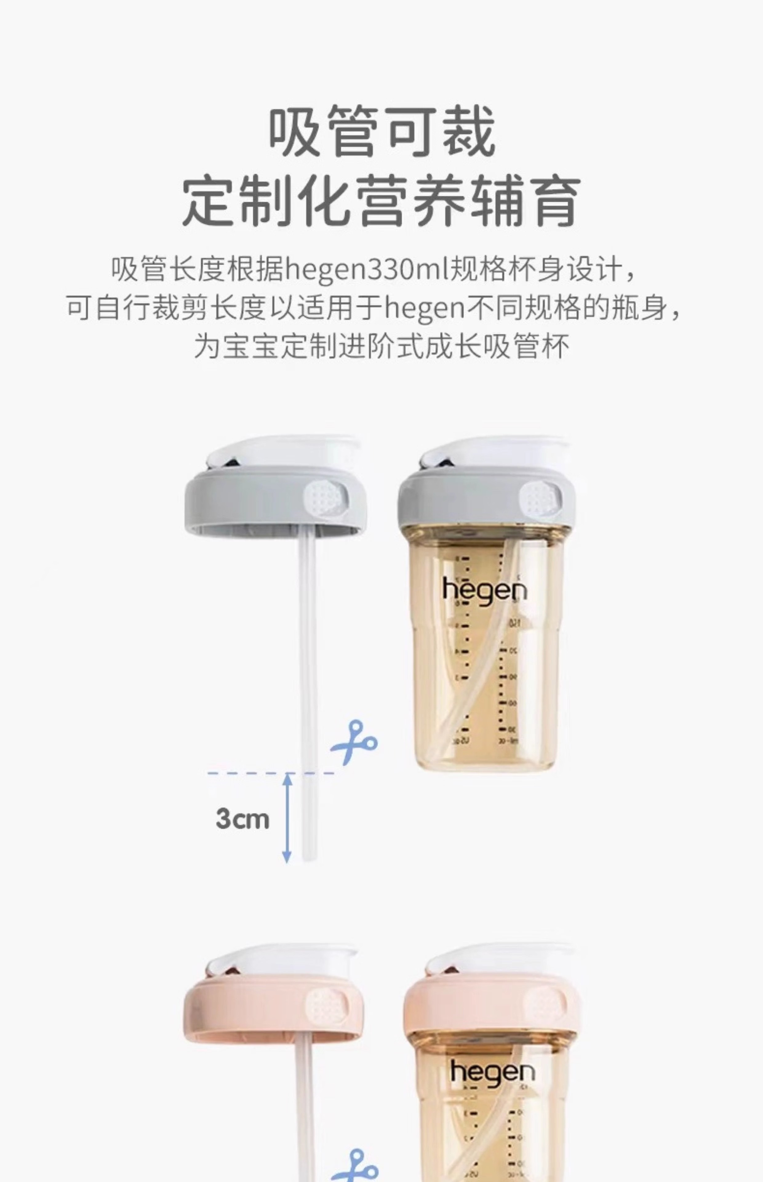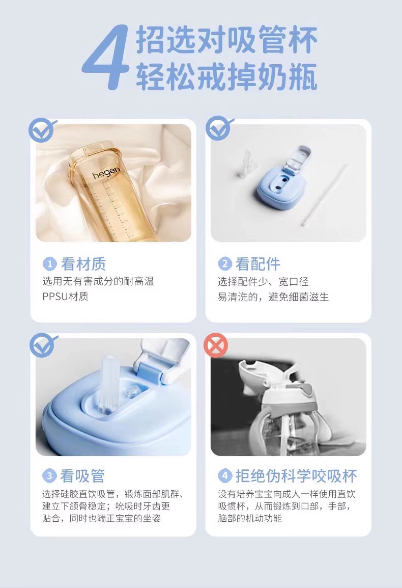 Hegen萌牙吸嘴吸管杯PPSU 330mL(莫兰迪粉/莫兰迪灰/莫兰迪蓝)
