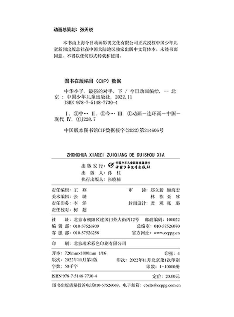 中华小子·最强的对手(下)一部以中国功夫为题材的动画片图书版 适读年龄3岁+