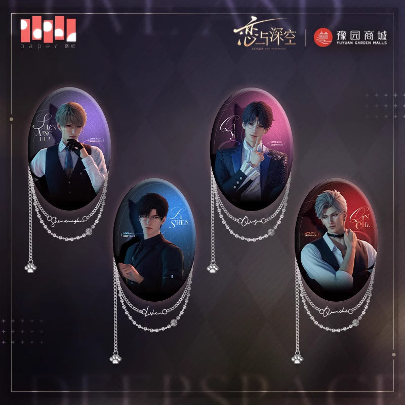 恋与深空 “喵”游季 椭圆链条马口铁徽章 吧唧 全4种 国谷