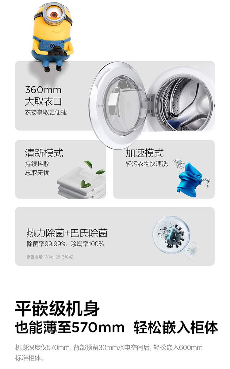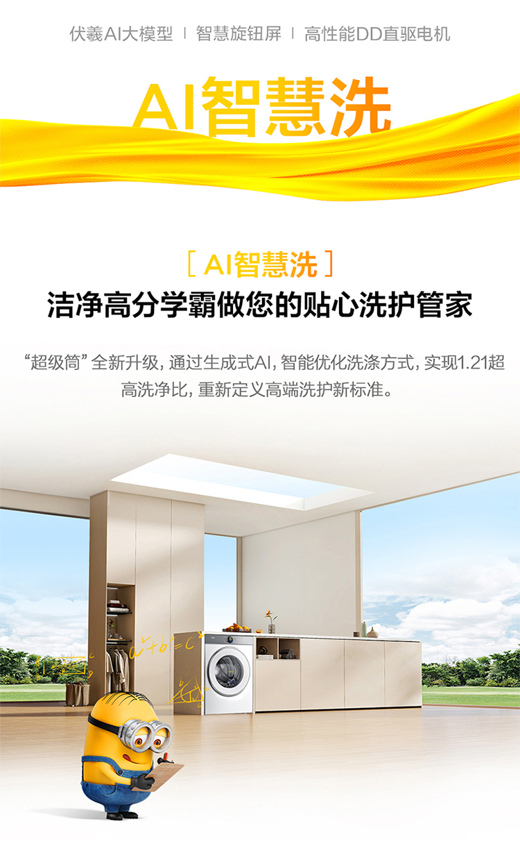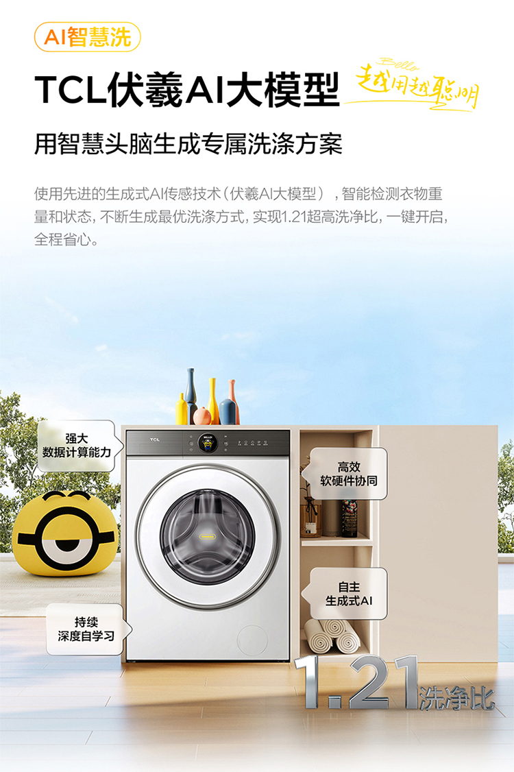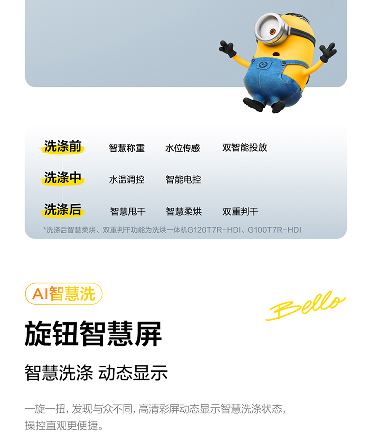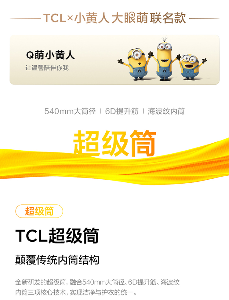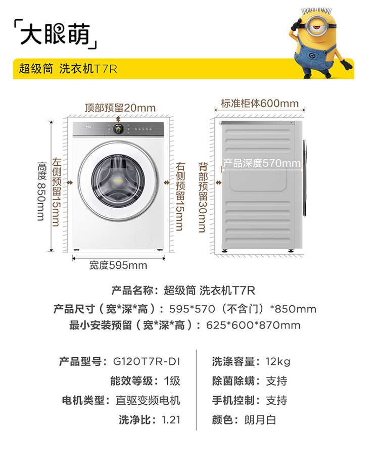 TCL小黄人·大眼萌超级筒T7R 12公斤DD直驱变频滚筒 G120T7R-DI