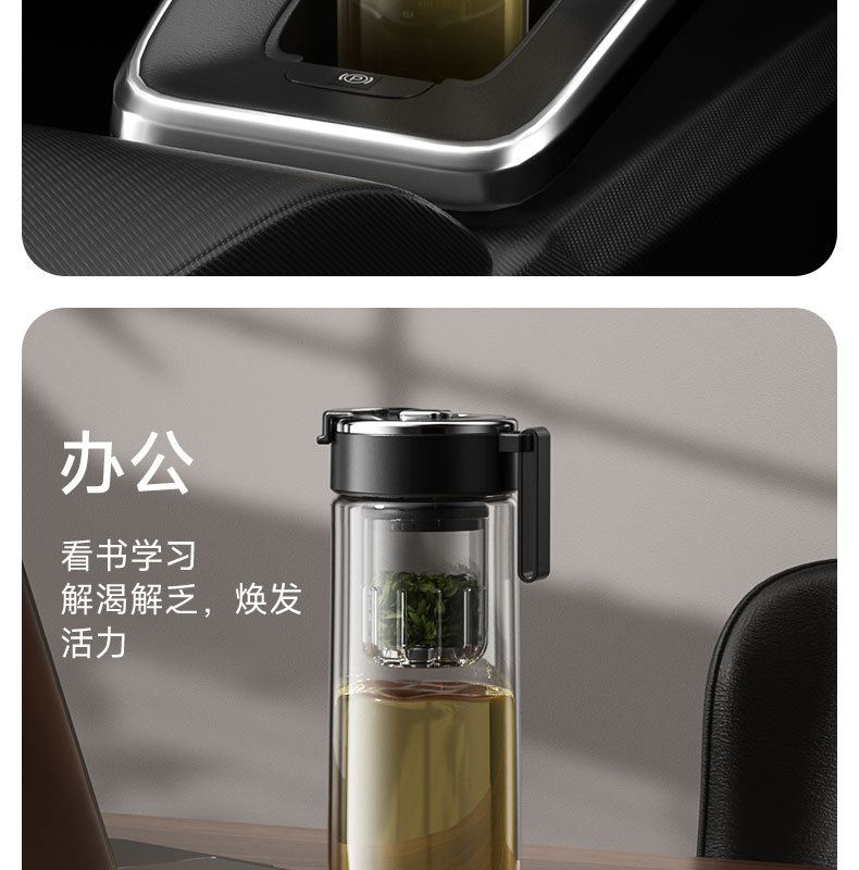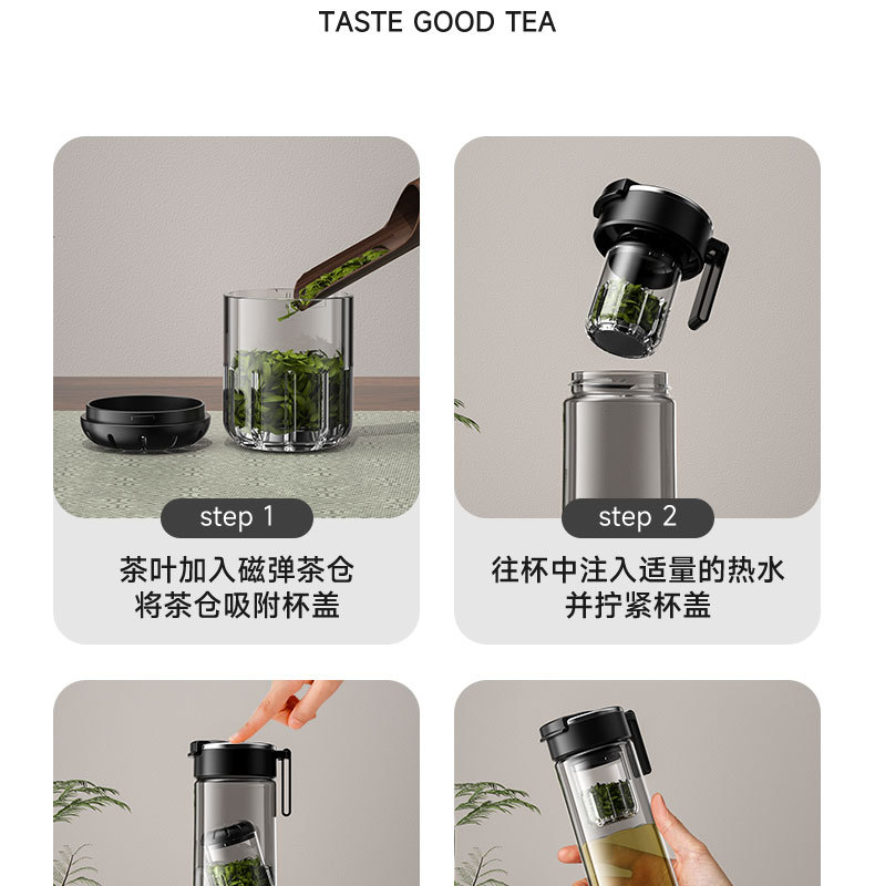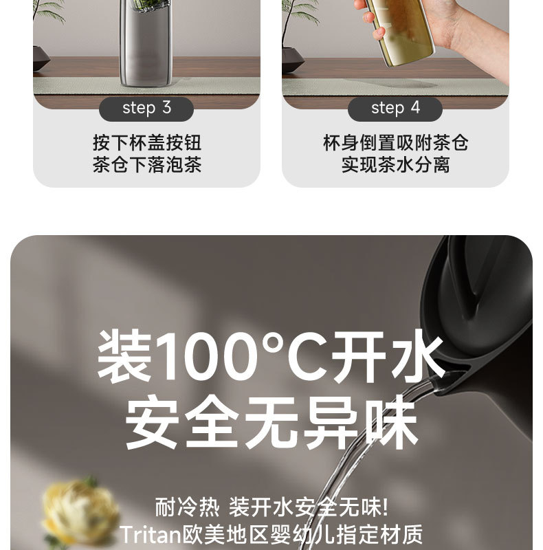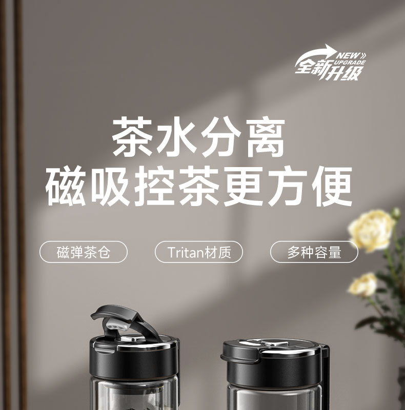 FXQ 便携耐高温【弹盖磁弹泡茶杯】茶水分离杯 休闲商务 男女士tritan水杯子