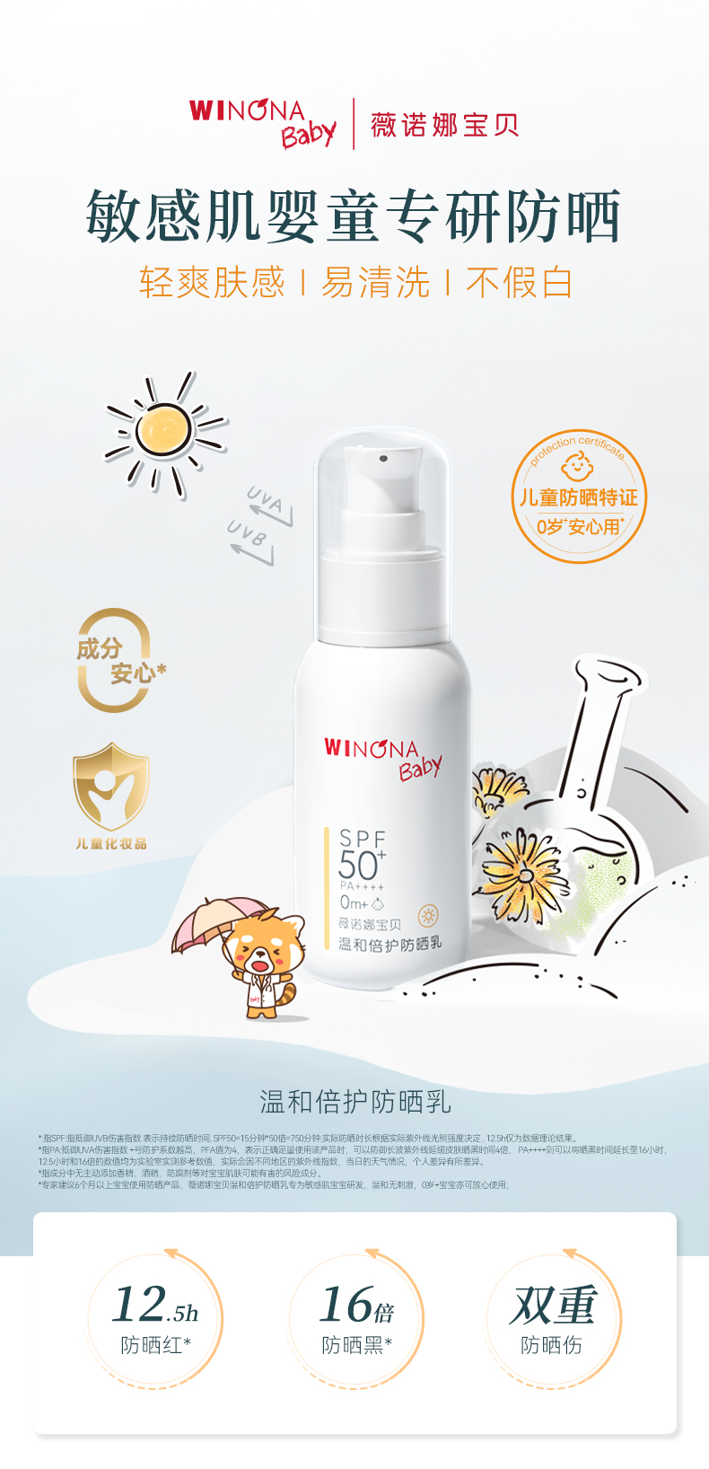 【品牌直供】薇诺娜宝贝温和倍护防晒乳50ml 赠50ml洁面+15ml晒后凝露