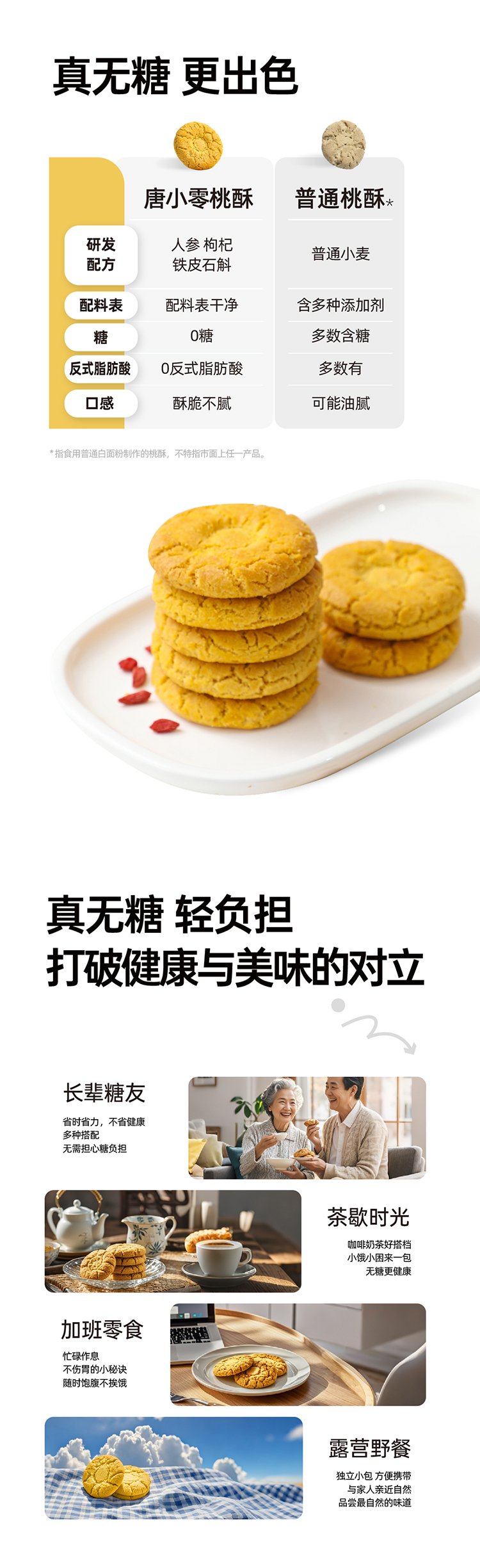 “线下商超同款”唐小零 五红谷物无糖饼干/无糖膳食营养低GI饼干/人参枸杞藜麦无糖桃酥/五黑谷物无糖饼干