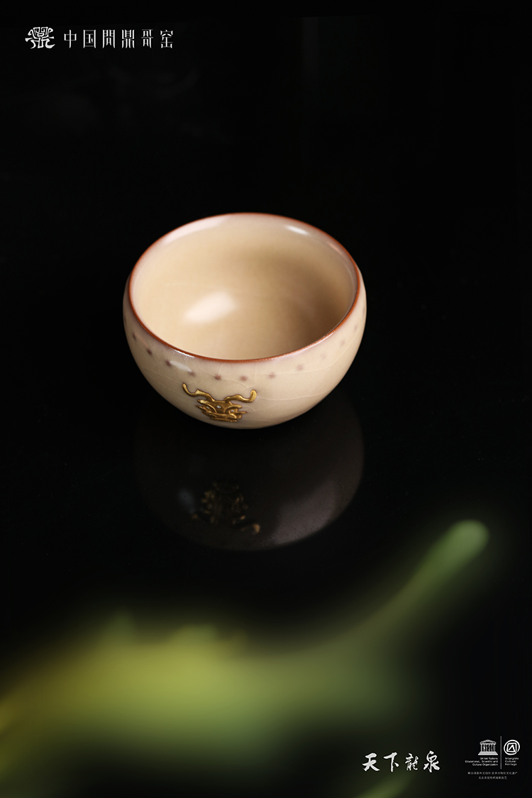 问鼎哥窑龙首战鼓杯(描金)