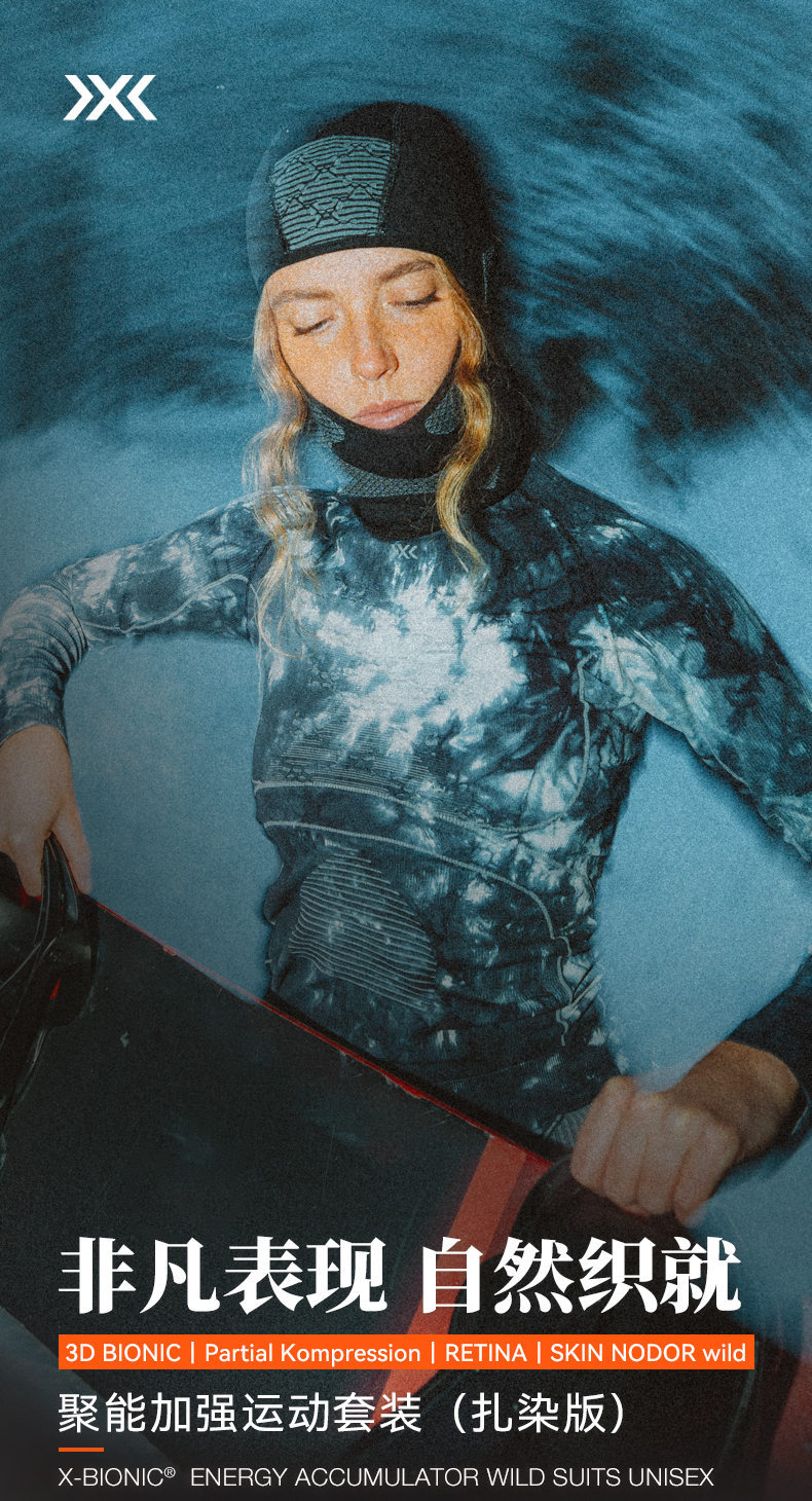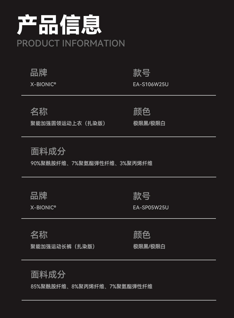 X-BIONIC聚能加强 圆领运动上衣/长裤 (扎染版) 滑雪贴身压缩衣抗菌S106W25U