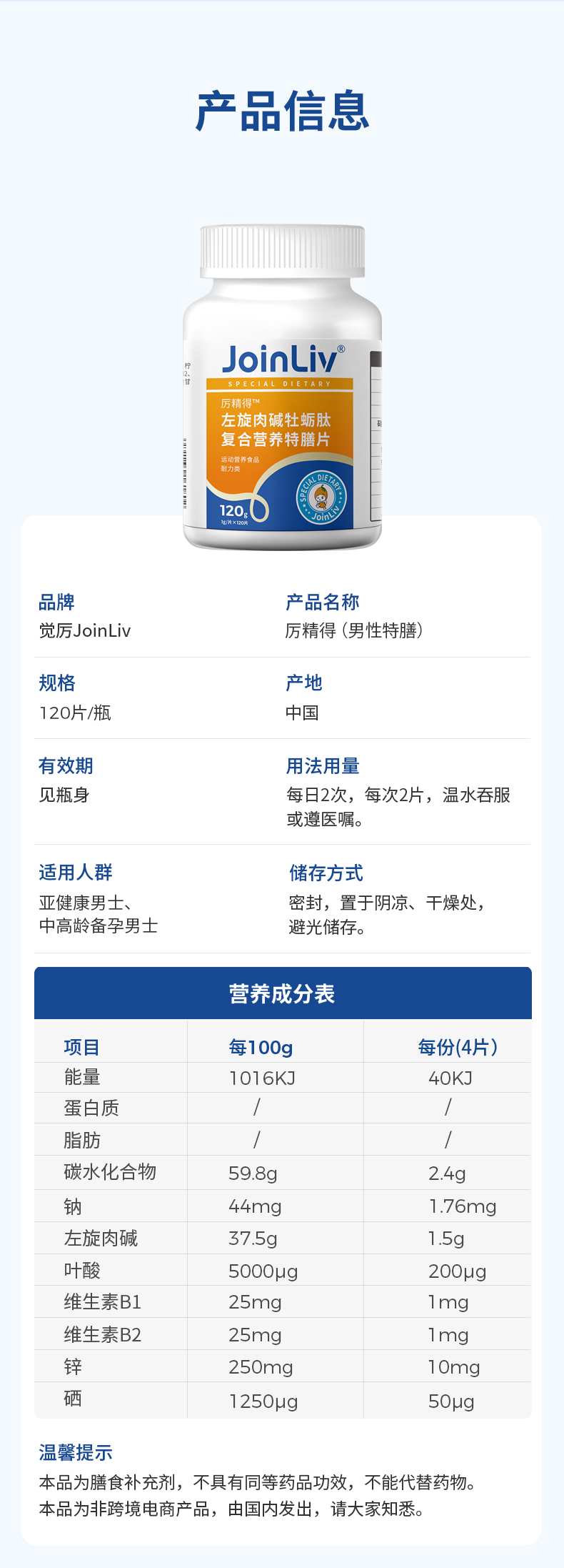 国产特膳 厉精得 男性特膳片 JoinLiv 觉厉【有效期至26年1月到期】