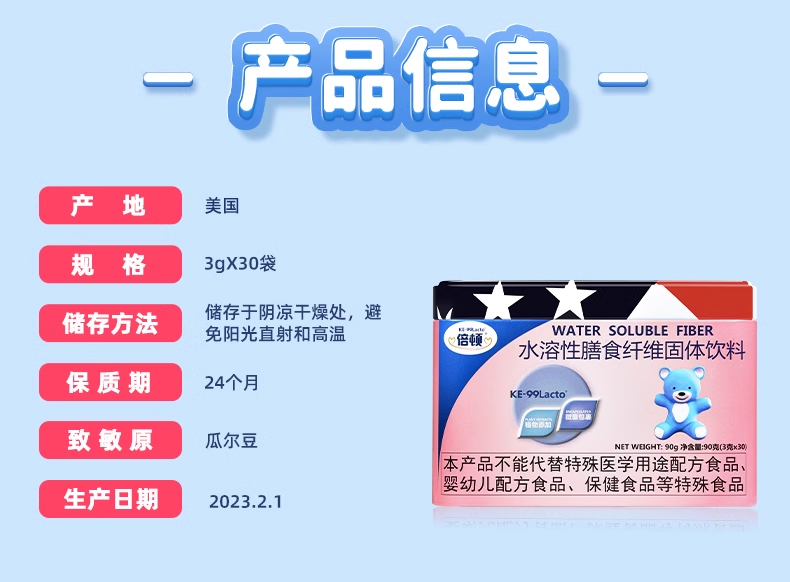 【刮码发货】美国倍顿水溶性膳食纤维固体饮料 温和缓解便便不畅90g(3g*30袋)