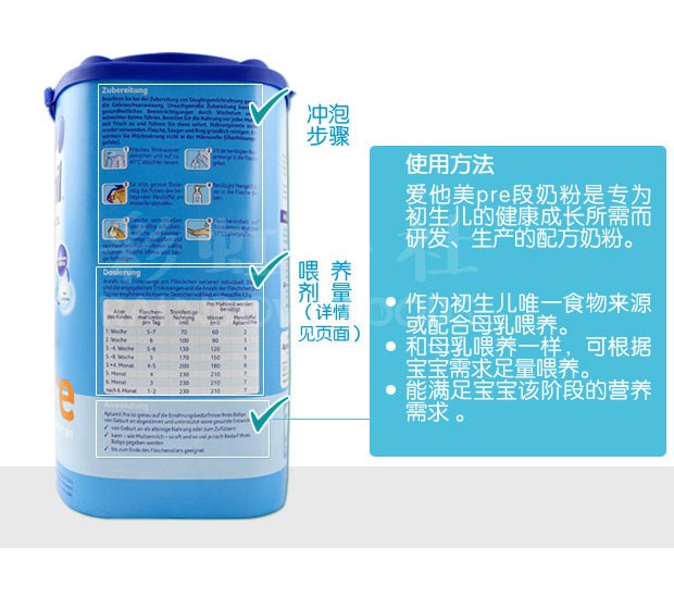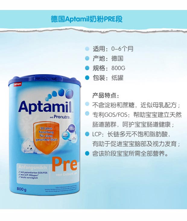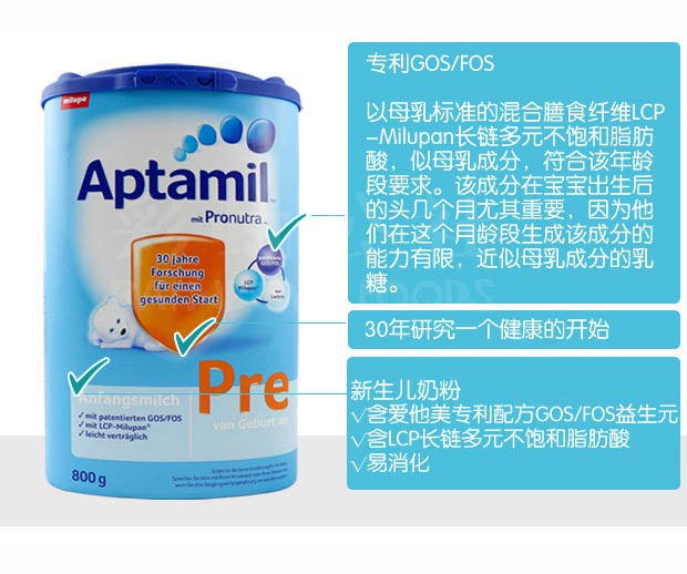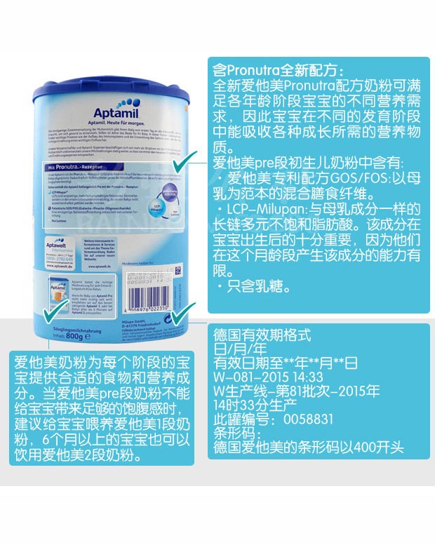 保税仓 德国原装爱他美Aptamil PRE段新生儿奶粉4罐包邮