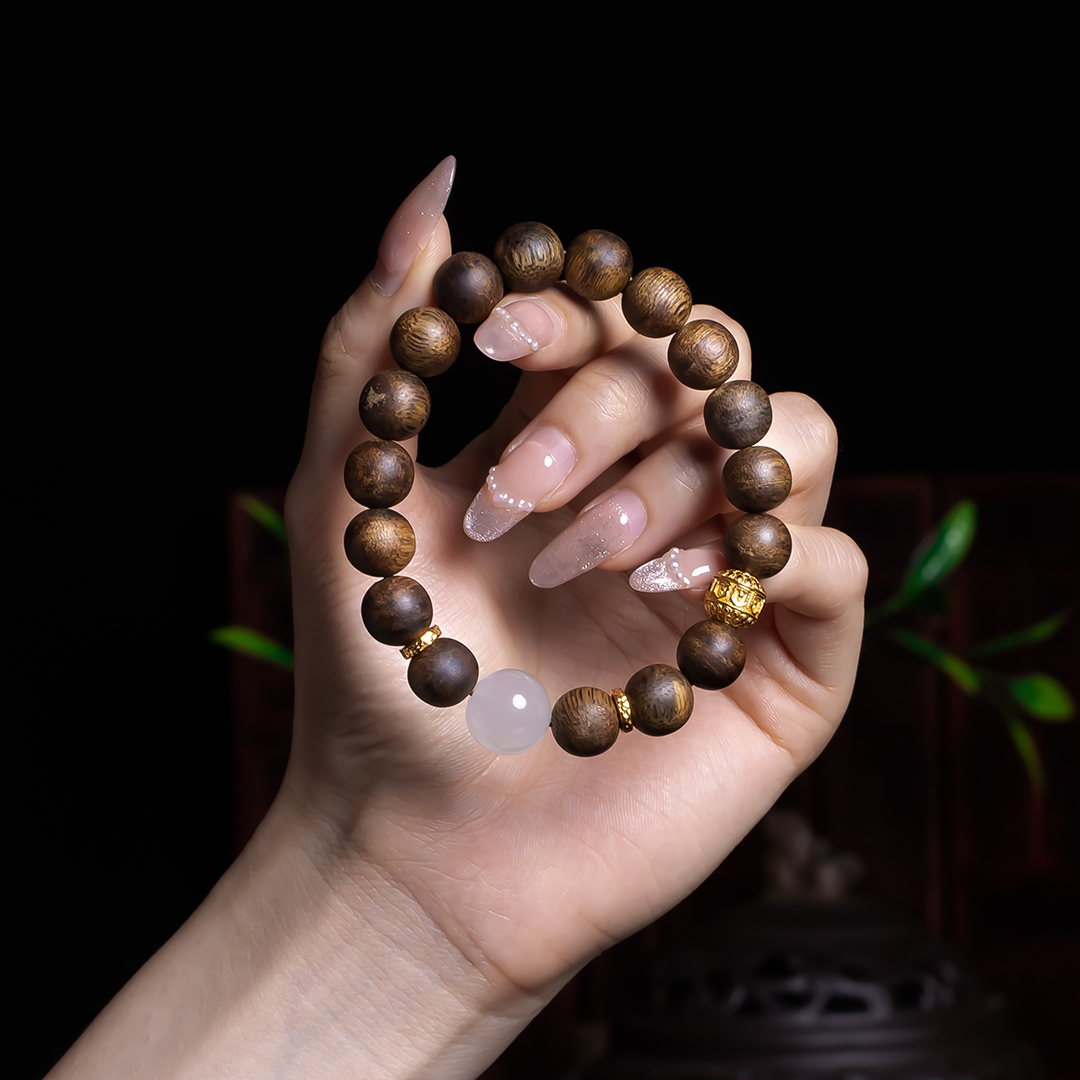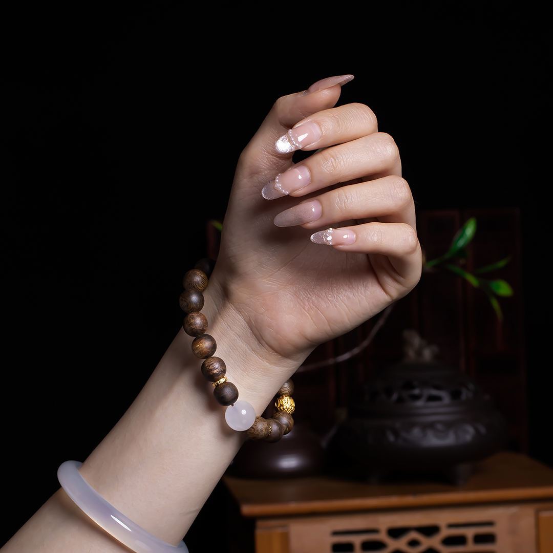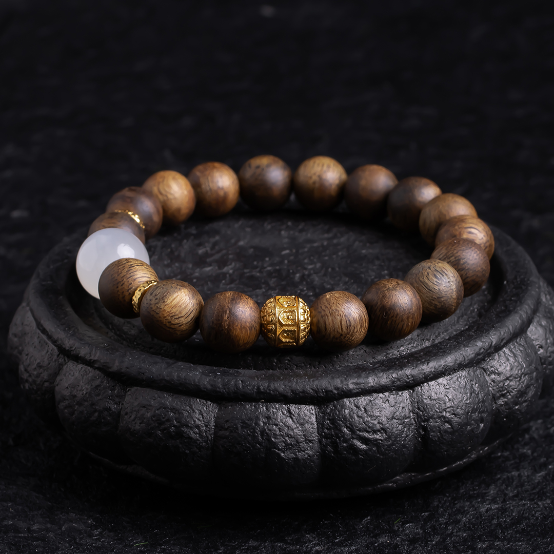 XY0380沉香+月光石素雅手串,天然沉香约10.3mm,原色原味,香味自然清甜,一枚月光石照亮整个手腕,银隔珠搭配,简约素雅,每一次举手,都仿佛带动着一片月光相随于腕间,让人心静神怡,沉香的清甜香气,更让人舒适、减压,养神静气。