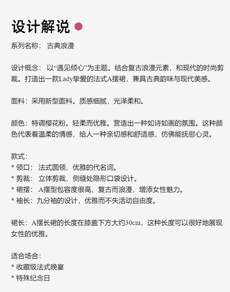 E系列—“法式浪漫”—“遇见倾心”—Lady挚爱、樱花粉A摆连衣裙 2401176