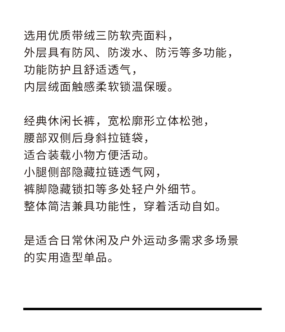 吃茶去chichaqu25户外三防防风防泼水软壳带绒宽松长裤徒步越野